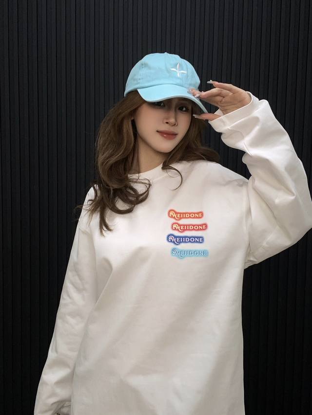 We11Done Online Data Style Neon Letter Print Unisex Printed Long-Sleeve T-Shirt