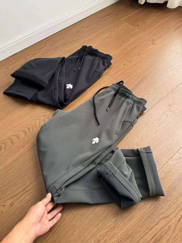 New Arrival! Descente Men's Woven Sports Running Pants, Autumn/Winter Windproof, Warm, Fleece-Lined. Made with 3L composite fleece fabric. The fabric is lightweight, windproof, and has a structured silhouette. The inner fleece layer is soft, delicate, and skin-friendly. Featuring an Active sports fit, it combines comfort and flexibility. The 3L composite fleece fabric is windproof, warm, soft, and skin-friendly. The adjustable elastic waistband stabilizes core muscles and allows for free adjustment, focusing on athletic performance. The Run-style design features a fleece lining for warmth and dual functionality for both warmth and exercise. Symmetrical pockets with hidden zippers.