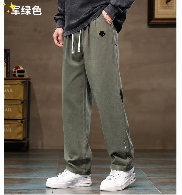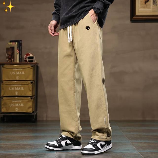 Descente pure cotton floor-length trousers, slightly wide workwear, pure cotton casual pants for camping and outdoor use!!