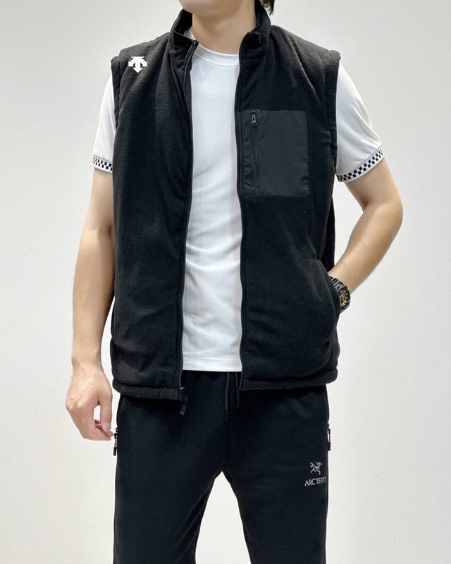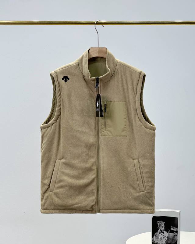 Descente's new winter men's waterproof, windproof, warm, plush, fleece-lined double-faced vest.