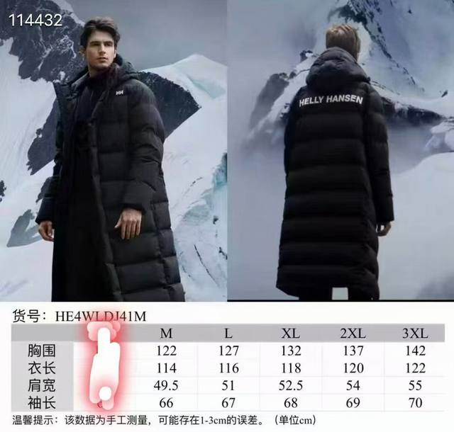 Helly Hansen Down Jacket, Goose Down Jacket Hh, Men's and Women's Autumn and Winter Cold-Resistant Warm Mid-Length Down Jacket
