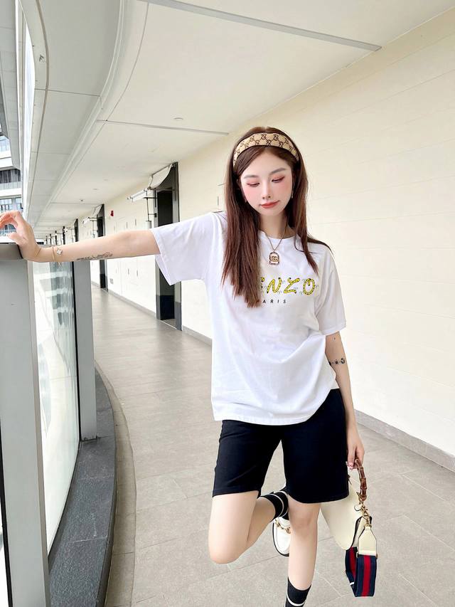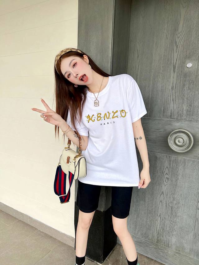 New arrival! Kenzo's new short-sleeved T-shirt with floral lettering is a must-h