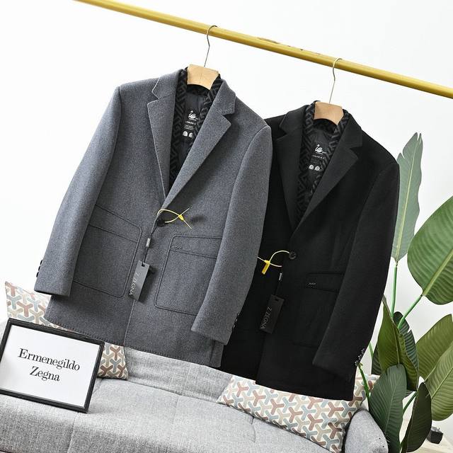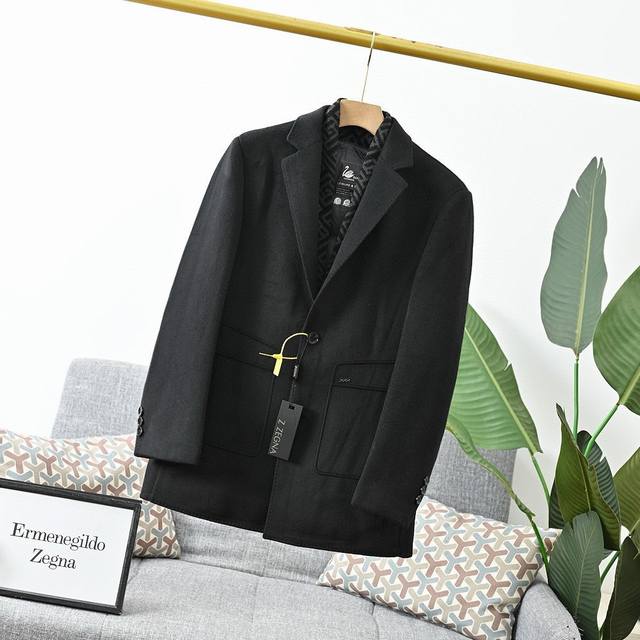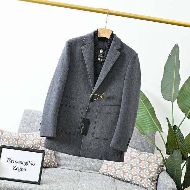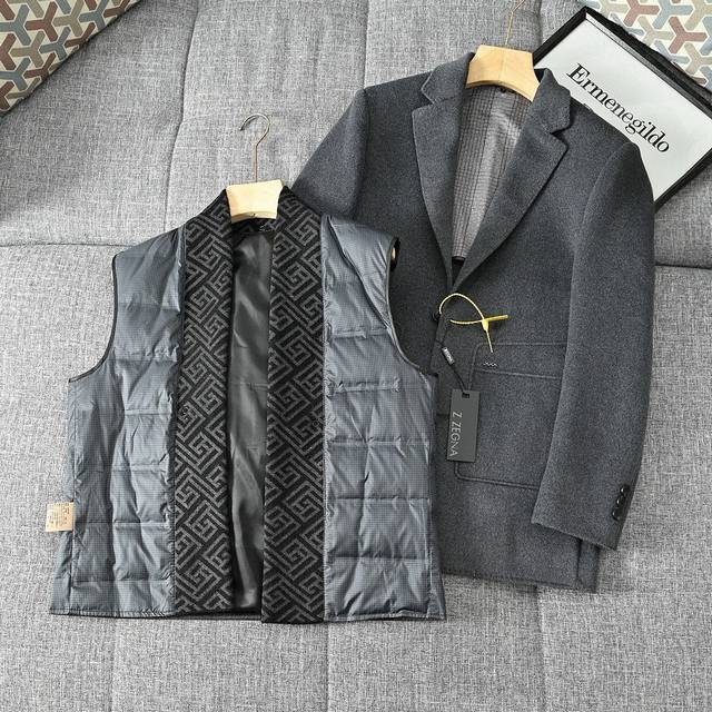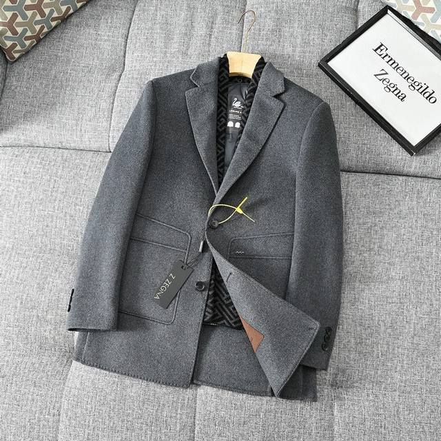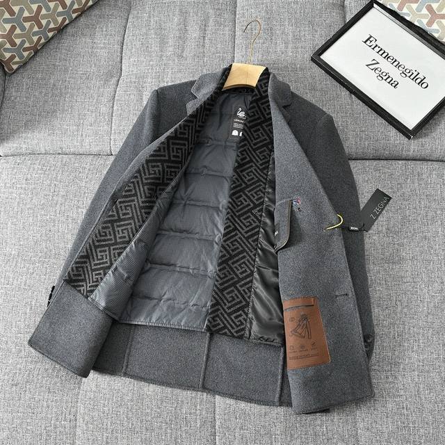 25S Zegna Autumn/Winter Light Luxury Men's Wool Double-Faced Down Jacket/Coat! Removable lining, incredibly stylish appearance, looks amazing on, suit style, classic and versatile black and gray!