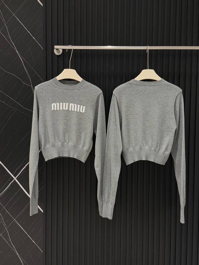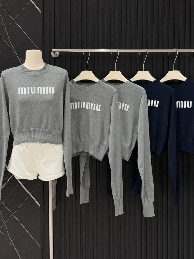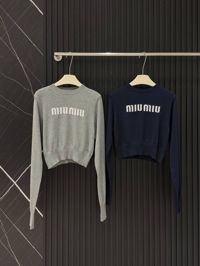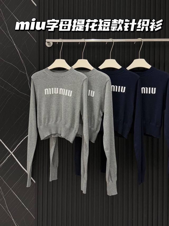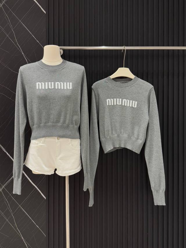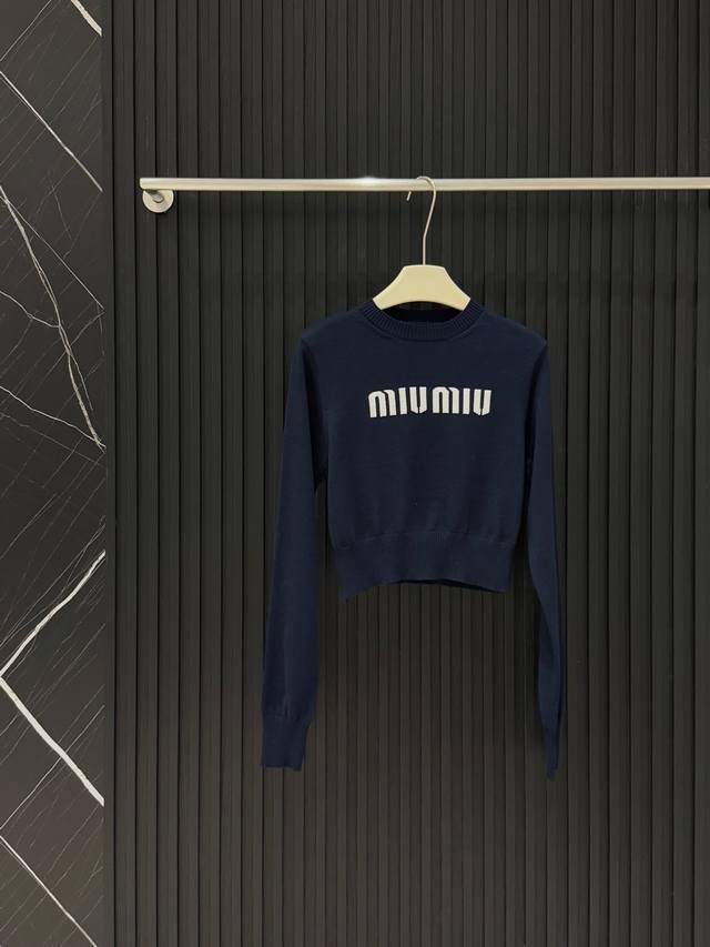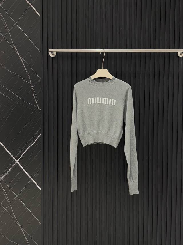 Miu Mi* Miu Miu jacquard short sweater with lettering.