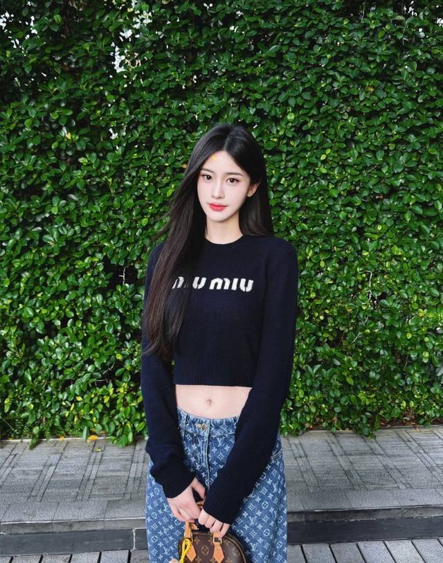 Short thin sweater, new colorblock logo round neck sweater, cute and age-reducing effect is undeniable~~ The short version is very suitable for creating long legs. Lookyb custom yarn texture is first-class basic style. Close your eyes and buy