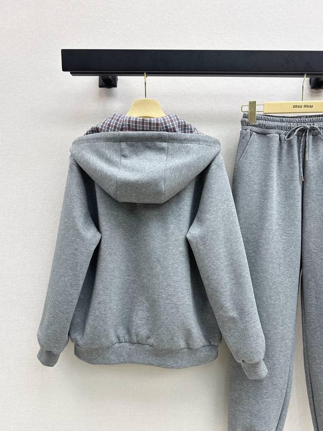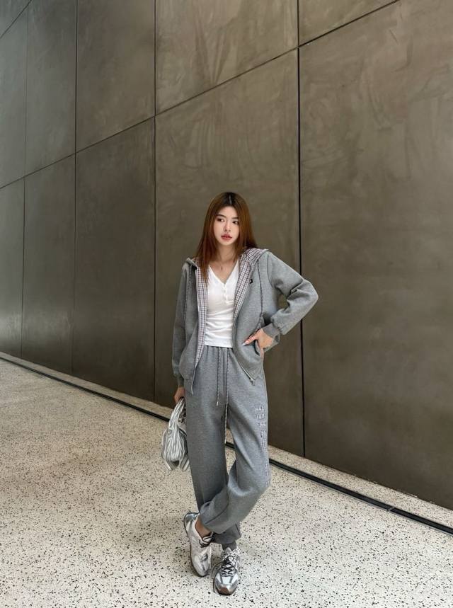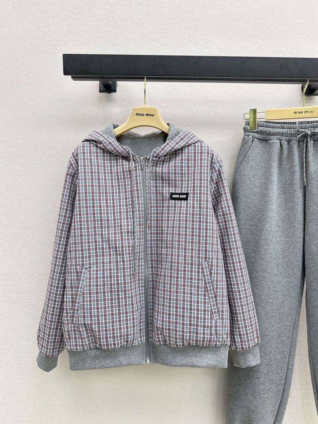 Reversible hooded jacket + elastic waist casual pants Customized twill cotton + plaid cotton Comfortable, breathable, crisp and stylish Hooded zipper jacket with fashionable and casual cut The iconic letter logo on the chest enriches the visual effect and makes it more fashionable The loose version makes you look slim and adds vitality One set of two colors is now in stock