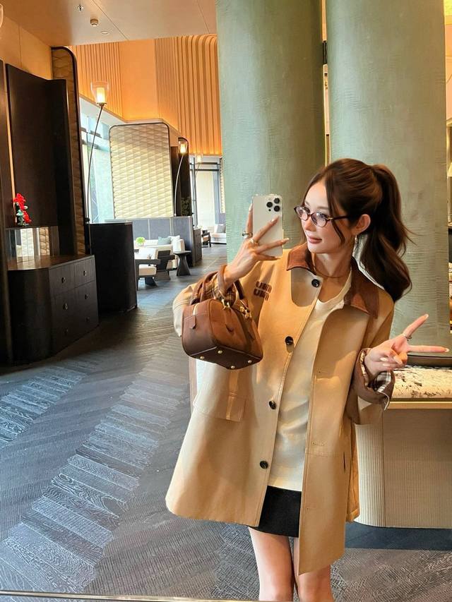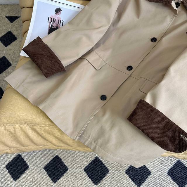 Miumiu Miu Miu 25Ss new collared trench coat with three-dimensional letter logo details. The mid-length style is the most practical and can be worn by anyone, regardless of height, weight or size. The coat automatically hides the flesh and has a sense of elegance, creating a lazy and casual look. The trench coat is really wearable and has a sense of style. The collar is made of brown corduroy stitching, which echoes the cuffs. The cuffs are fashionable and stylish, full of details~