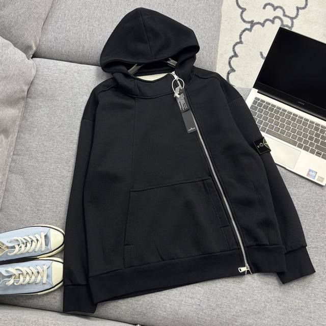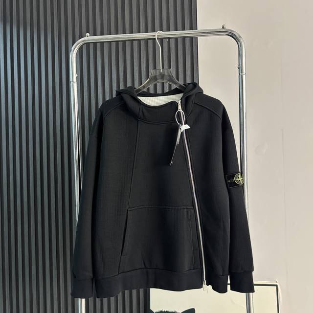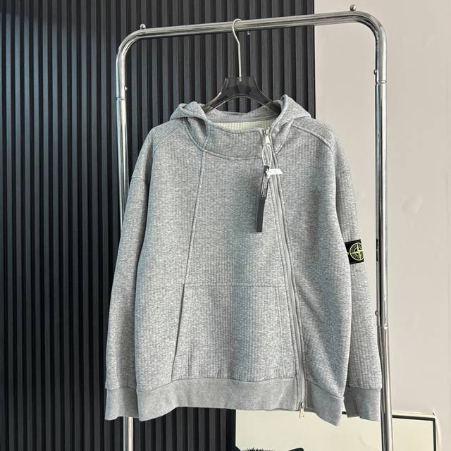 Stone Island's new autumn style American-style sleeve arm badge logo hooded diagonal zipper jacket, unisex, classic and versatile series that will never go out of style, a perfect all-purpose item for autumn travel.