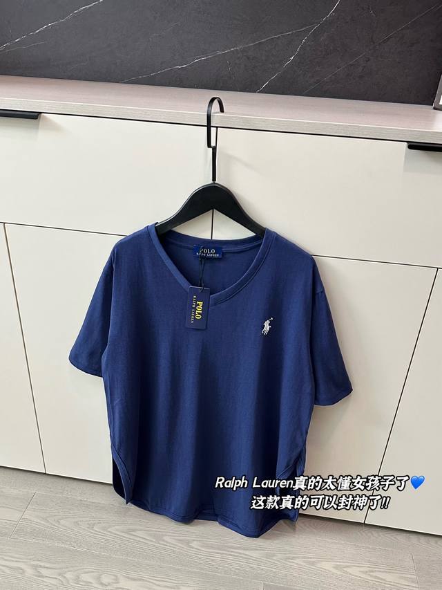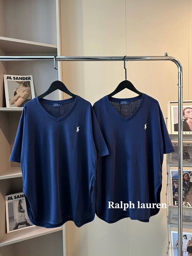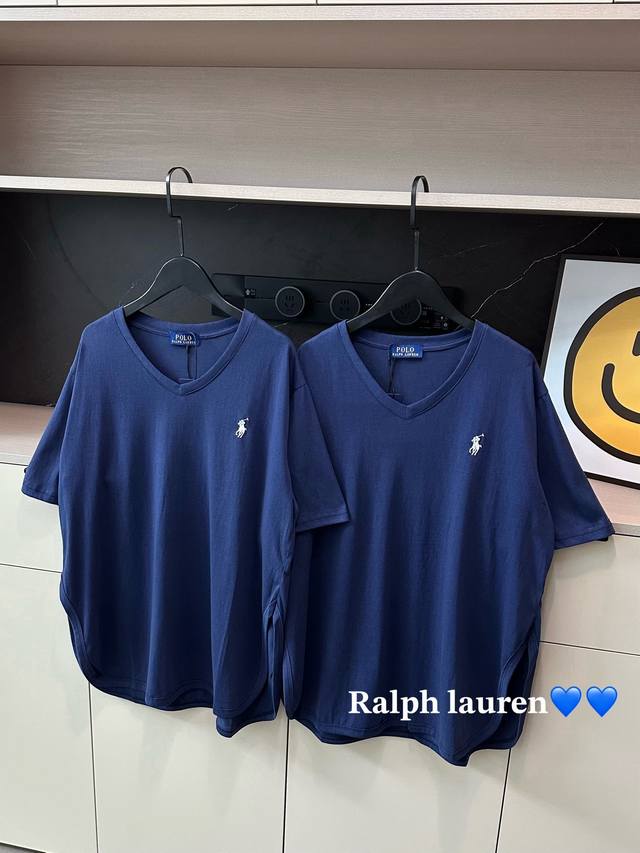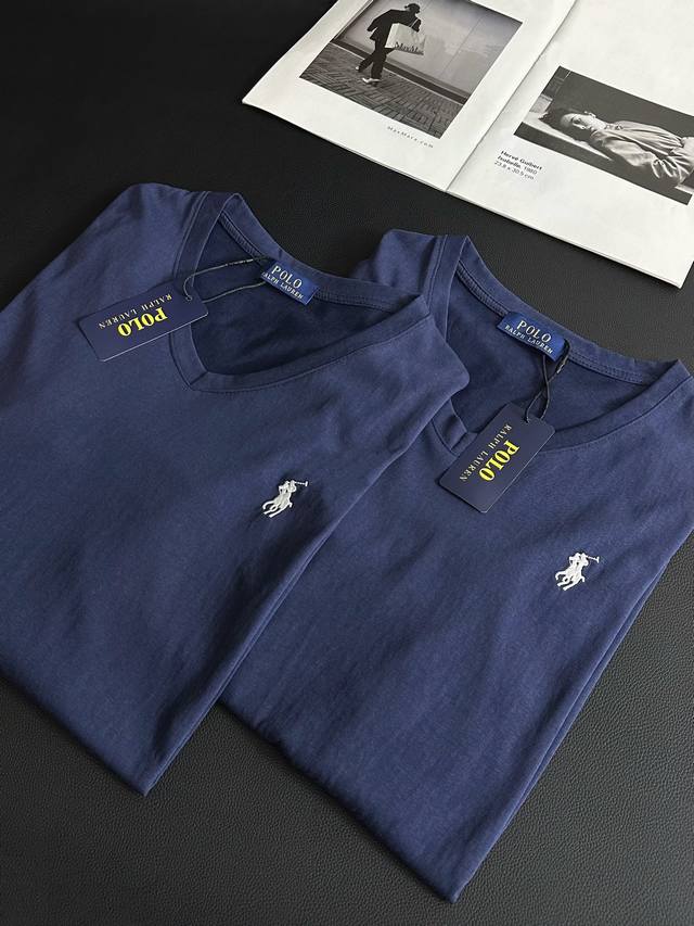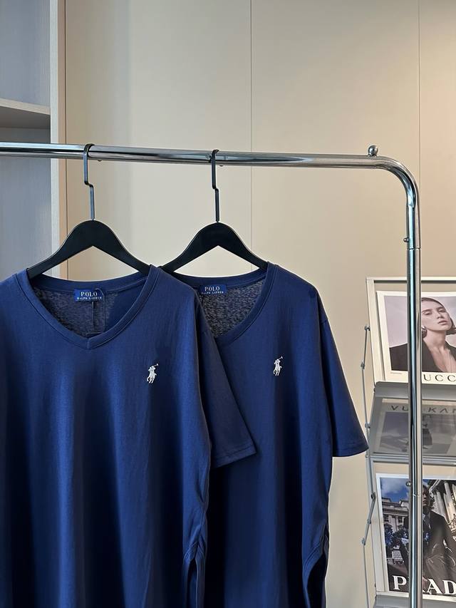 New arrival Ralph Lauren pony embroidered logo navy blue V-neck short-sleeved T-