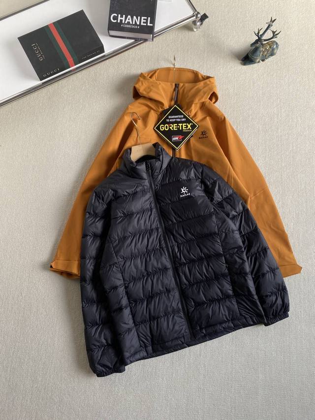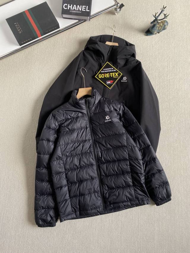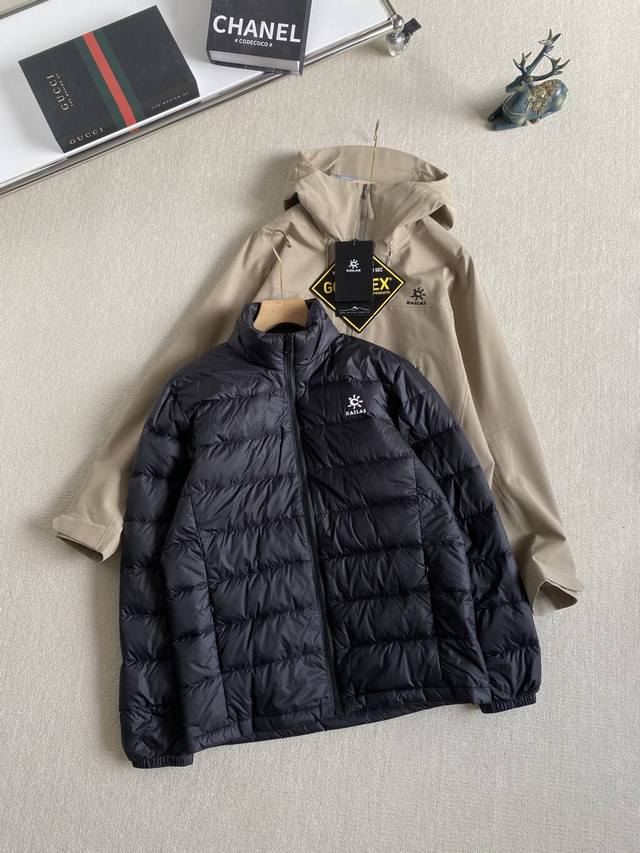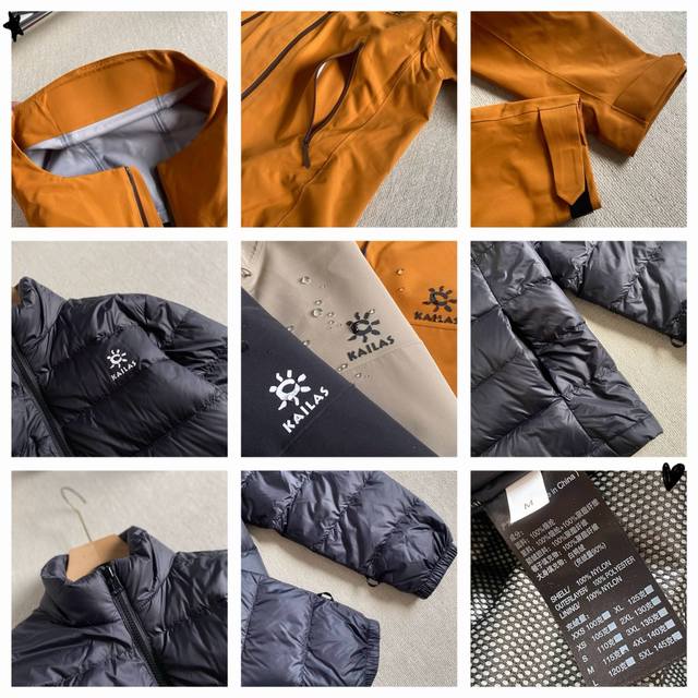 New Arrival Real Shots DDD Kailas Hard-Shell 3-in-1 Down Jacket with Removable Down Liner, Six-Protection Technology, Three-Layer Seam Sealing, High-Density 3-in-1 Technical Fabric! Essential for Hiking and Mountaineering, Excellent Warmth, Protection, and Comfort, Suitable for Outdoor Enthusiasts for Winter Skiing, Hiking, and Mountaineering Ddd Also Suitable for Daily Commuting and Business Trips. Strong Wind and Water Resistance, Made with Filter-Tec 3-Layer Hard-Shell Fabric, This Fabric Has Excellent Wind and Water Resistance, and All Seams Are Sealed Inside, Effectively Resistant to Winter Wind, Rain, and Snow, Suitable for Wearing in Harsh Outdoor Environments, Providing Reliable Protection for the Wearer. Good Abrasion Resistance: Hard-shell fabrics generally have a certain degree of abrasion resistance, which can reduce damage to down jackets caused by friction and other factors during outdoor activities, extending their service life. High Down Content: The down content of white duck down reaches 90%. A high down content means better quality down, superior warmth retention, and reduced clumping during use, maintaining the jacket's loft and warmth. Graphene Heat-Reflecting Technology: Graphene heat-reflecting technology is added to the interior to enhance warmth in the core area. Graphene has excellent thermal conductivity and heat reflectivity, reflecting heat emitted by the body back to the body, improving warmth retention and better keeping the body warm in cold environments. Hood Design: The hood is three-dimensionally adjustable, fitting snugly to the head, effectively blocking wind and providing extra protection for the head, reducing heat loss in cold weather. Cuff Design: Velcro cuffs are adjustable to individual needs, enhancing the seal and preventing cold wind from entering. Colors: Black, Khaki, Brown. Sizes: M-3XL Size Chart: M: Chest 120cm, Length 70cm, Weight around 120kg; L: Chest 124cm, Length 72cm, Weight around 140kg; XL: Chest 128cm, Length 74cm, Weight around 160kg; XXL: Chest 132cm, Length 76cm, Weight around 180kg; 3XL: Chest 136cm, Length 78cm, Weight around 200kg