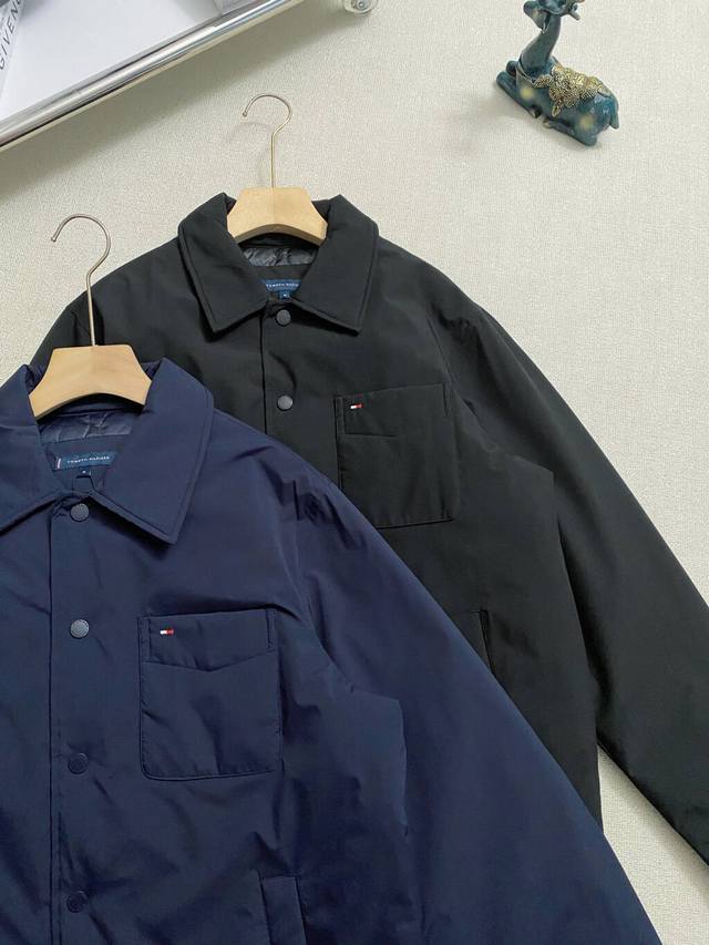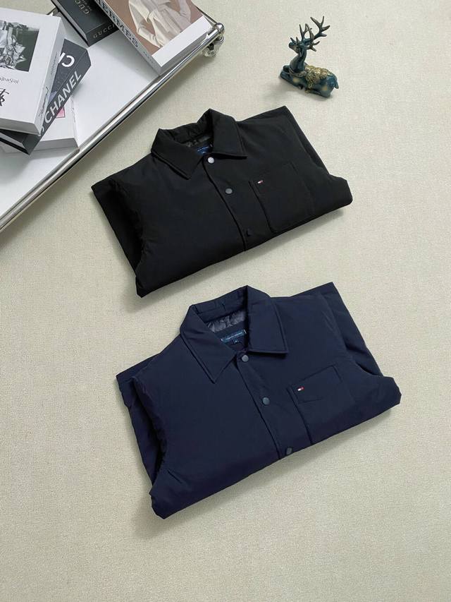 New Arrival Real Shots DDD Tommy 25 Autumn/Winter Men's Waterproof and Wear-Resistant Shirt Collar Unquilted Down Jacket. A simple and stylish look, mature and elegant, a down jacket that is simple yet not monotonous. The casual lapel style is easy to wear for everyday occasions, very pleasing to the eye. The slightly slim fit prevents a bulky appearance. All hardware is custom-made, and the sleeves feature a signature silicone embossed logo, understated yet sophisticated, exuding elegance in its simplicity. Custom-made waterproof and lightweight fabric, soft and wrinkle-resistant, embodying mature masculine charm! Color: Black/Navy Size: S-2XL Size Chart: S Chest 114cm, Length 66cm, Weight under 120kg M Chest 118cm, Length 68cm, Weight under 140kg L Chest 122cm, Length 70cm, Weight under 160kg XL Chest 126cm, Length 72cm, Weight under 180kg XL Chest 130cm, Length 74cm, Weight under 200kg