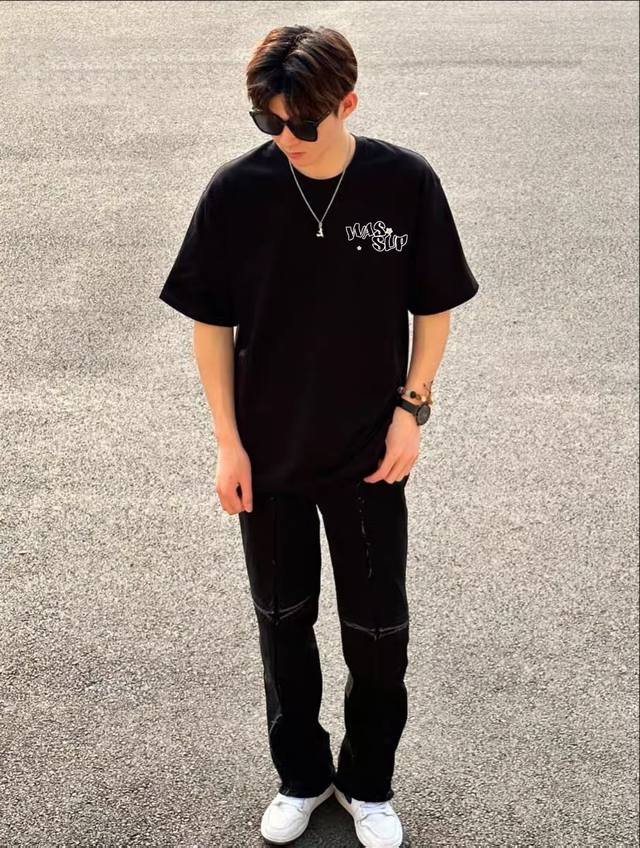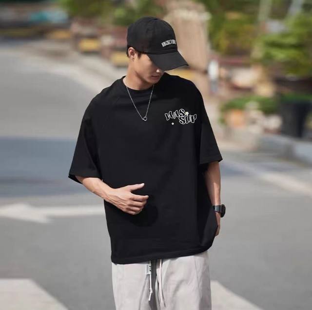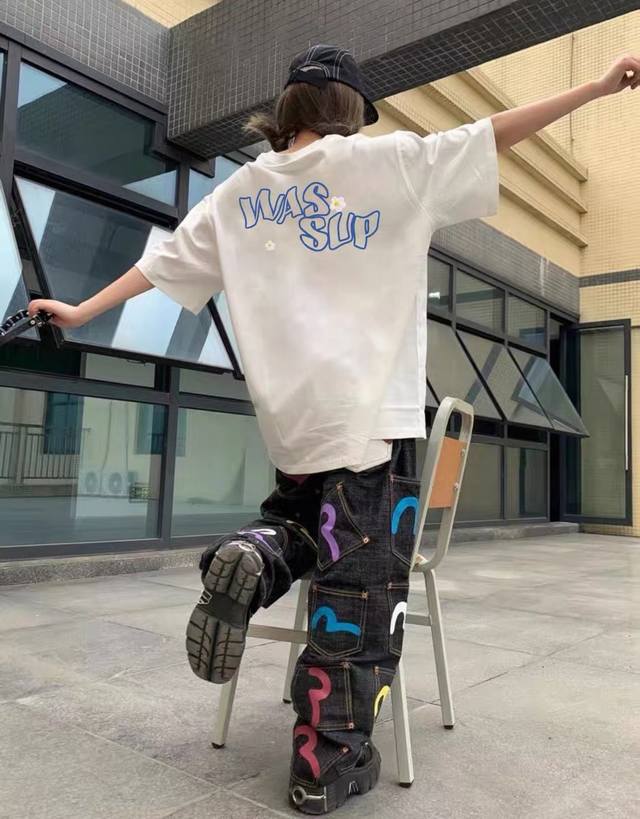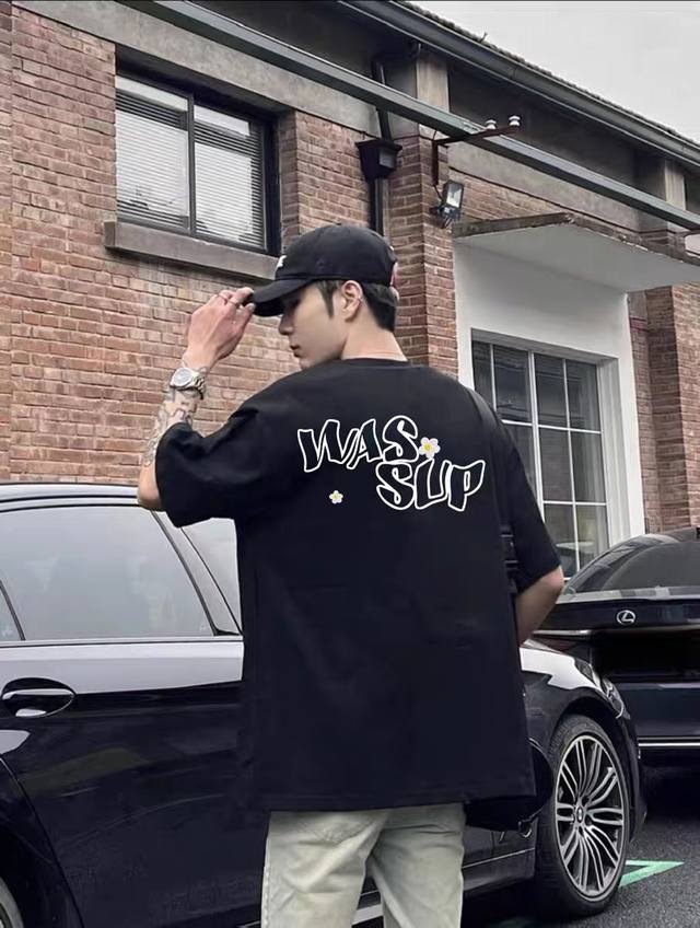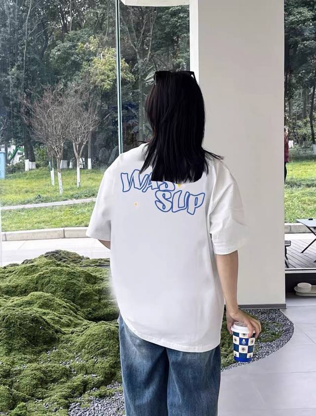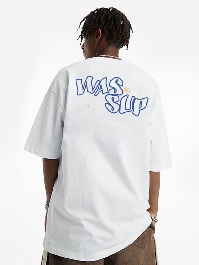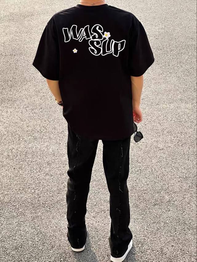 Wassup2640 New Daisy Print Short-Sleeve T-Shirt for Men and Women, Spring New Style, Loose Fit, 260g Pure Cotton Top