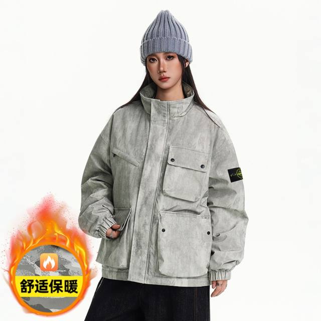 Stone Island 2025 Autumn/Winter Cotton Jacket, Loose Camouflage Jacket. A popular online and offline bestseller. Made with novel and unique high-quality export materials, this loose-fitting jacket features a zip-up hood and a stylish design. Excellent fit, three-dimensional tailoring, high-quality factory production, and meticulous craftsmanship. The fabric is pure in color, wrinkle-resistant, and has a good drape. Comfortable to wear, the microfiber lining is non-irritating and offers a comfortable feel. The fabric is trendy and stylish, with a perfect fit that will turn heads. The loose fit is flattering for all body types.