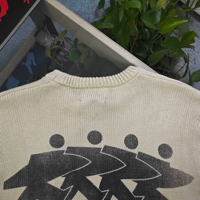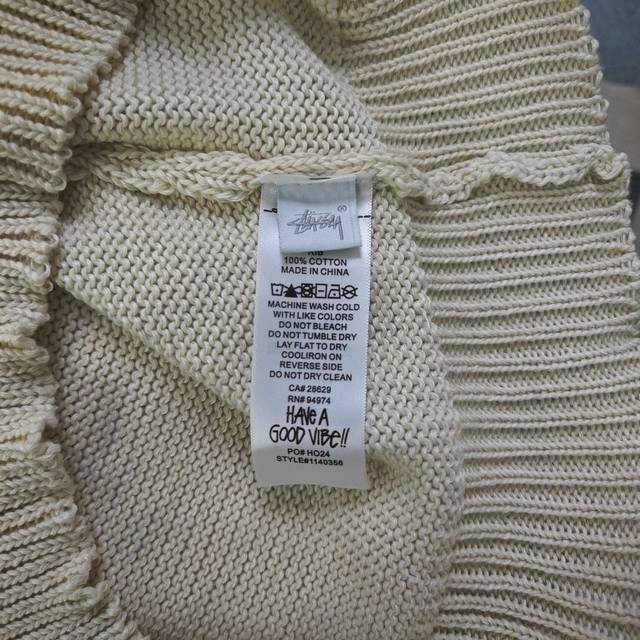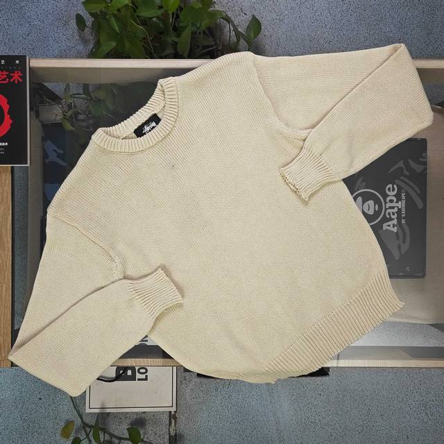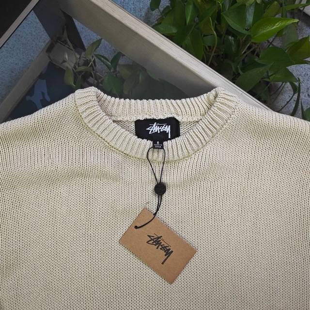 2025 Autumn/Winter Stussy Surfer Logo Jacquard Couple Loose Knit Crew Neck Sweater. Made with original 100% wool fabric and custom yarn, this sweater is versatile and of high quality, high gram weight, and pill-resistant. Small sizes weigh over 600 grams. A must-have for autumn and winter, perfect for layering or wearing alone! Made with a super high-gram weight custom-grade wool blend and custom-woven high-gram weight yarn, the seams feature handmade, original-quality trim. It has a beautiful drape and excellent fit with meticulous details! The large, all-over jacquard logo on the front and back creates a striking contrast, reflecting the Stussy brand culture. The continuous pattern from the sleeves to the body is visually impressive, exuding a rebellious street style with an exaggerated fashion flair. Perfect for layering or wearing alone, it highlights the Stussy trend. A versatile winter essential, unisex! Color: Apricot Size: S