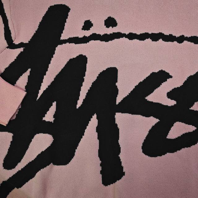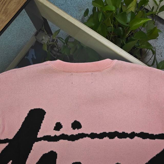 2025 Autumn/Winter Stussy All-over Logo Jacquard Couple Loose Knit Crew Neck Sweater. Made with original 100% wool fabric and custom yarn, this sweater is versatile and of high quality, pill-resistant, and available in smaller sizes (over 600g). A must-have for autumn and winter, perfect for layering or wearing alone! Made with a super high-quality custom wool blend and custom-woven high-weight yarn, the seams feature handmade, original-quality trim. It has a beautiful drape and a well-tailored fit with meticulous details. The large all-over logo jacquard pattern on the front and back creates a striking contrast, reflecting the Stussy brand culture. The continuous pattern from the sleeves to the body is visually impressive, exuding a rebellious street style with an exaggerated fashion flair. Perfect for layering or wearing alone, this sweater is a must-have for winter and is unisex! Color: Pink Sizes: S-XL Length, Chest, Sleeve Length, Shoulder Width S 64 116 58 46.5 M 66 60 47.5 L 68 124 62 48.5 XL 70 128 64 49.5