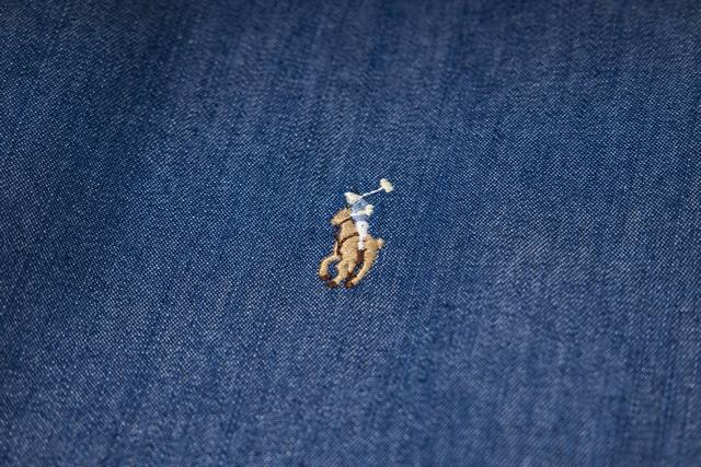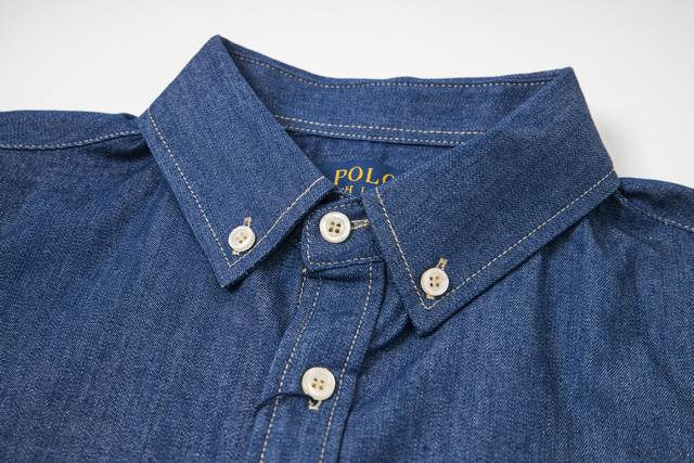 Ralph Lauren classic color small label couple style washed denim long-sleeved shirt