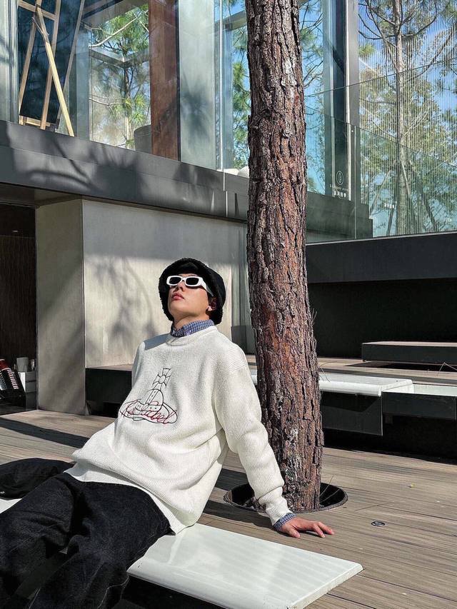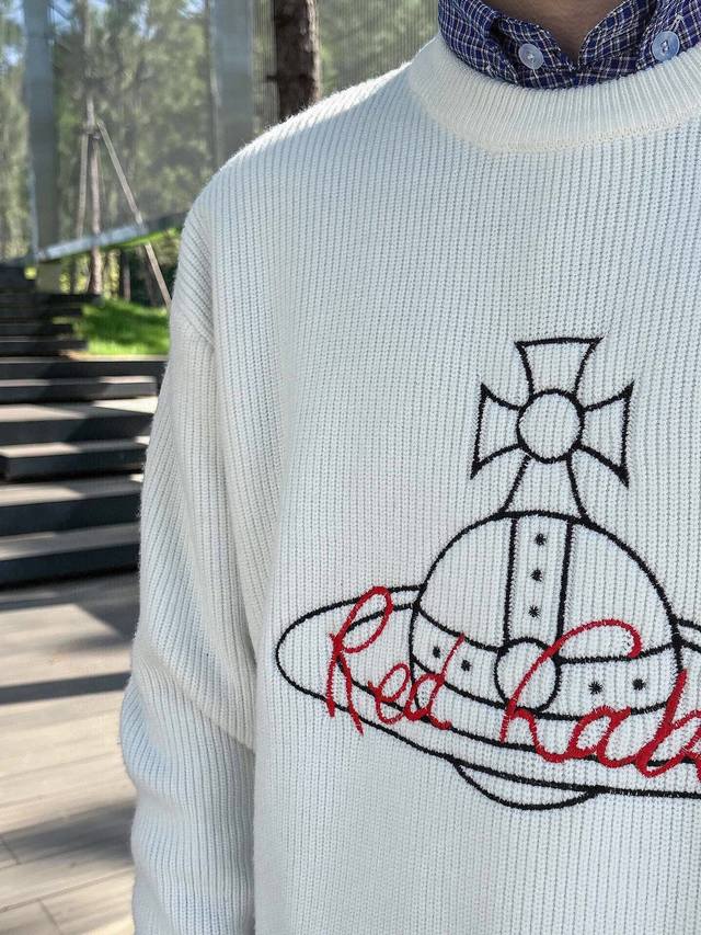 New Arrival Vv Vivienne Westwood 3D Embroidered Logo Pullover Crew Neck Sweater