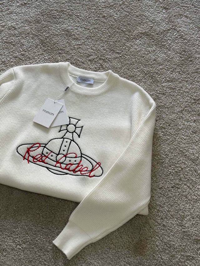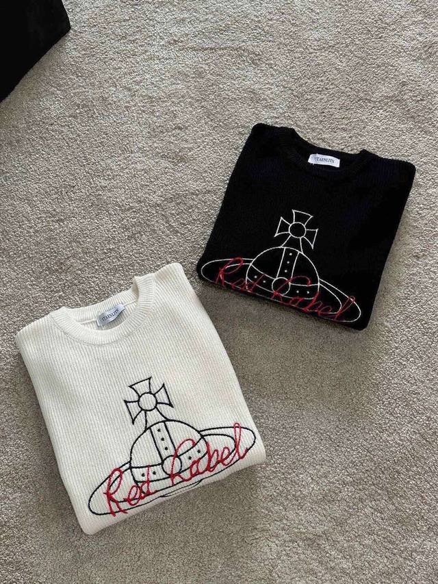New Arrival Vv Vivienne Westwood 3D Embroidered Logo Pullover Crew Neck Sweater