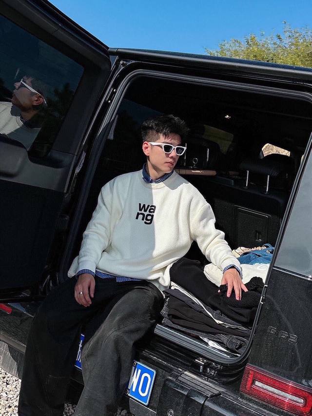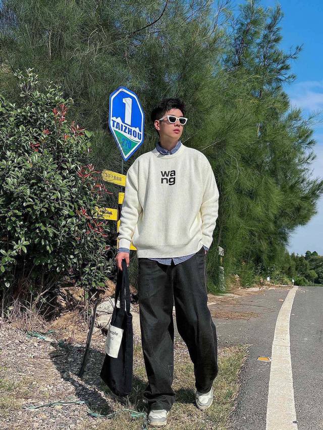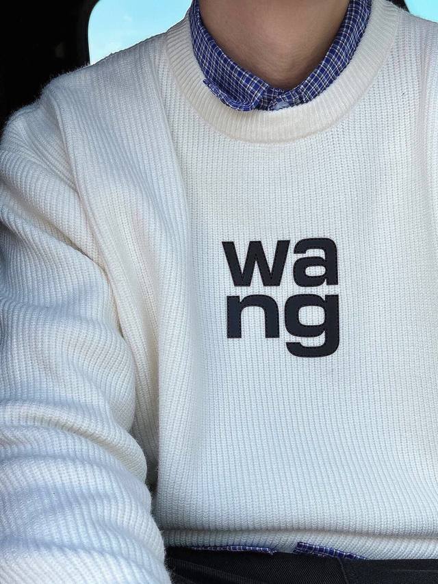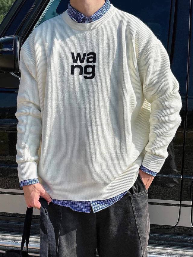New Arrival Wang 3D Engraved Lettering Pullover Crew Neck Sweater Custom knitted