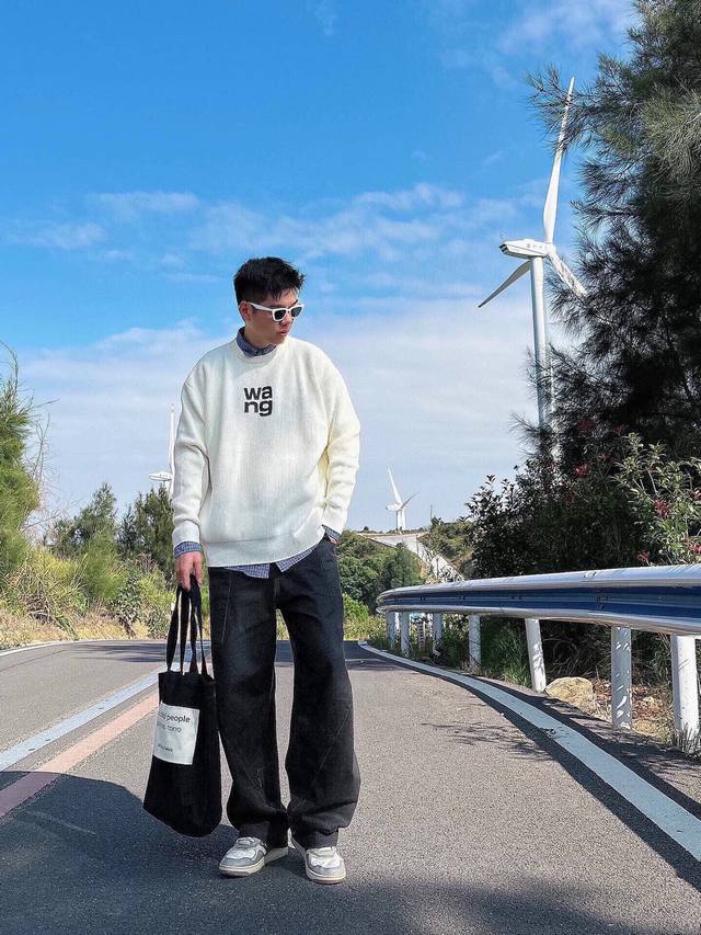 Wang 3D Engraved Lettering Pullover Crew Neck Sweater