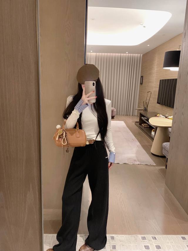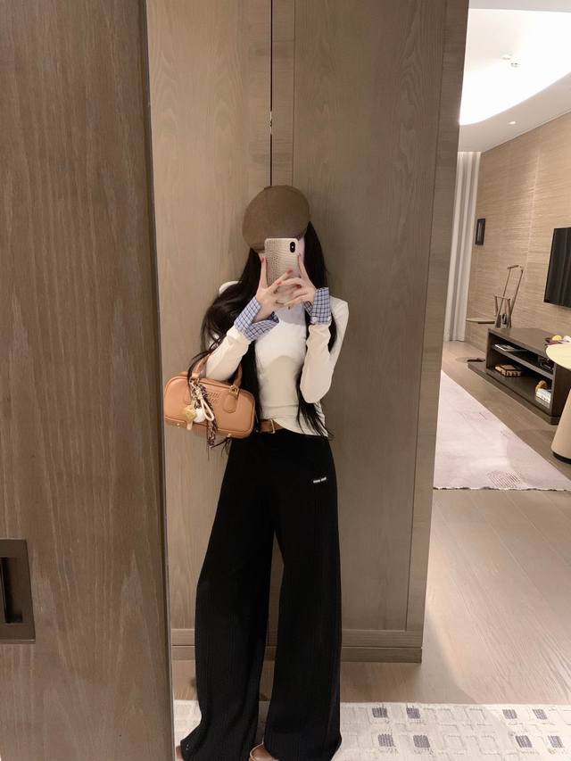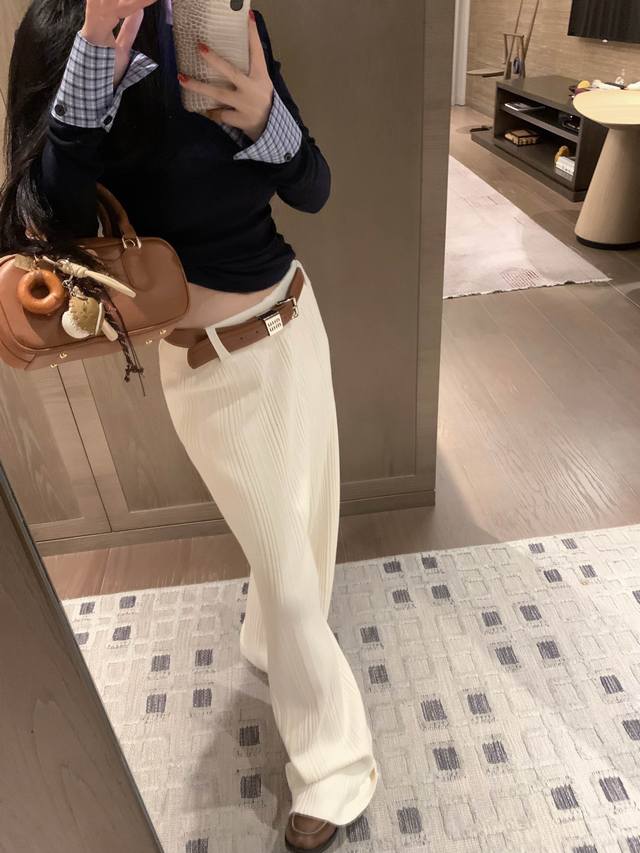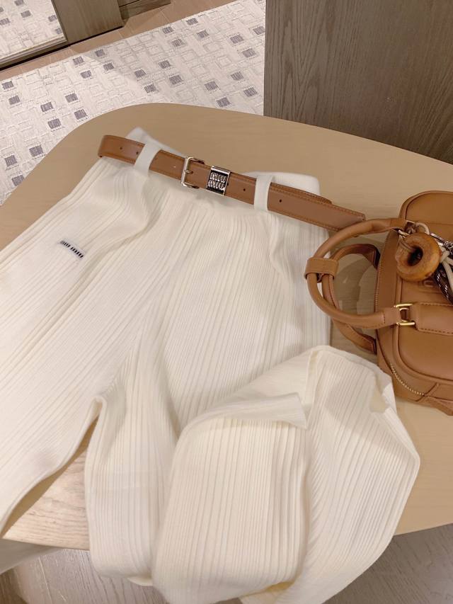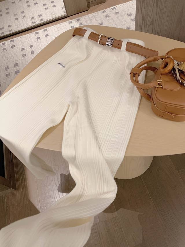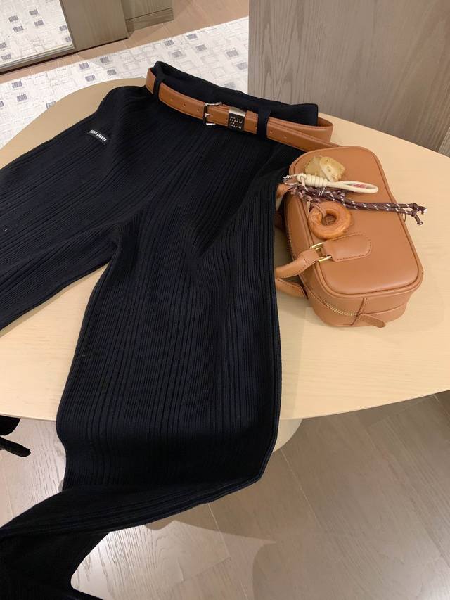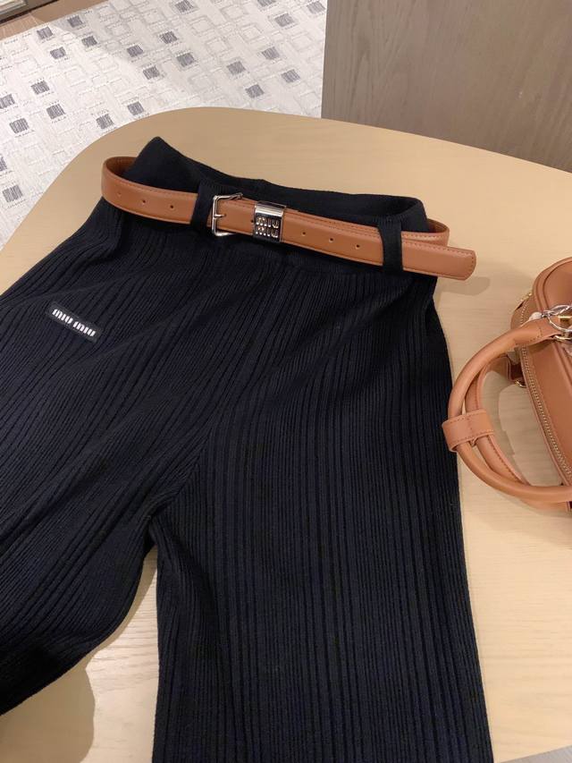 Miumiu Miu Miu 25. Autumn new arrival Miu casual knitted pants with khaki belt