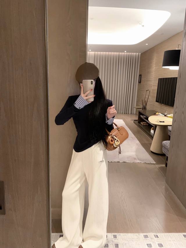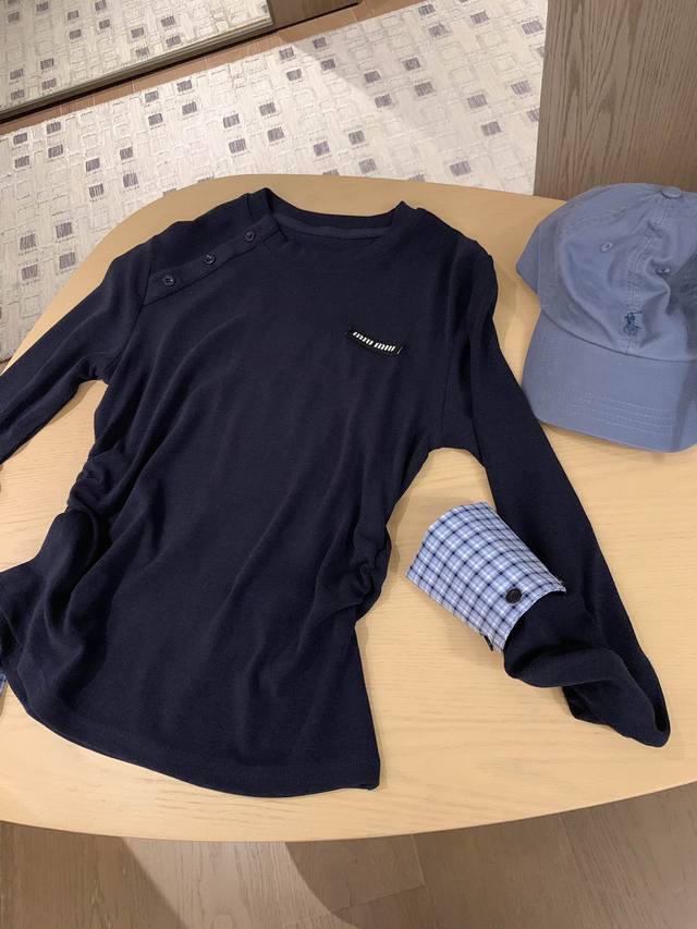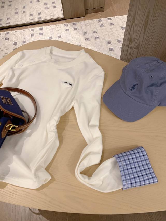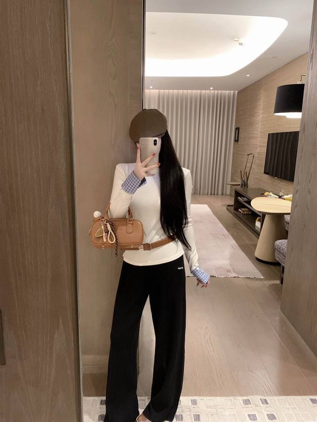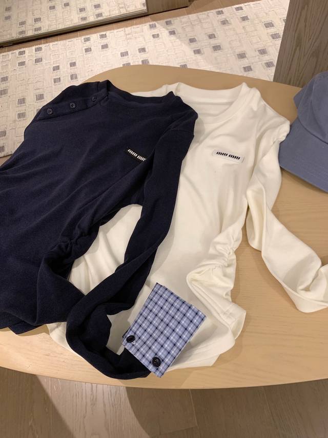 Miumiu Miu Miu 25. New arrival in autumnMiumiu's daughter-in-law style patchwork plaid bottoming top