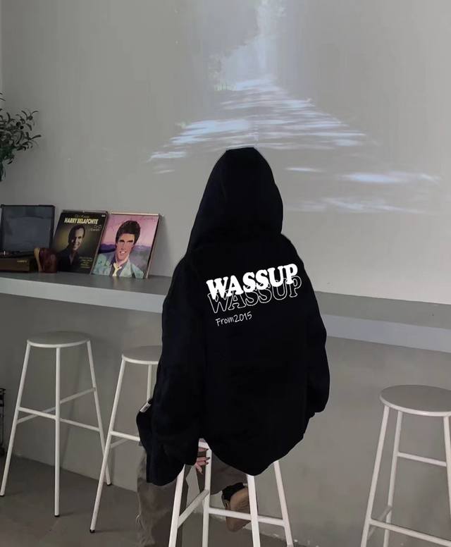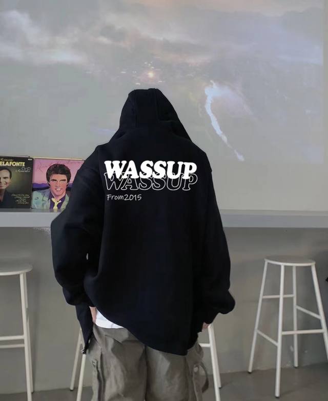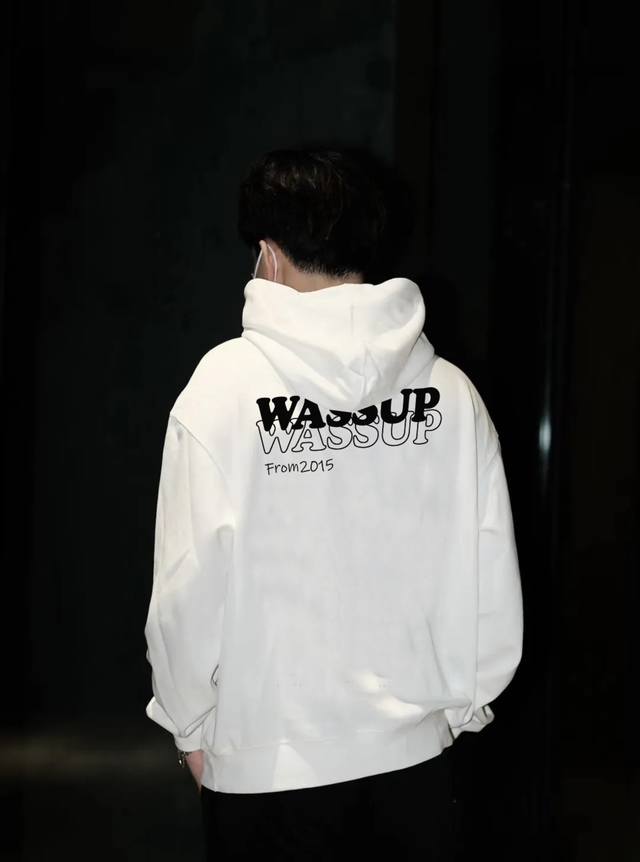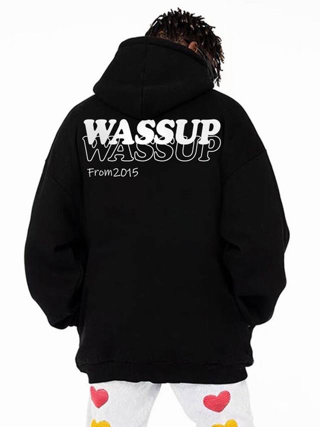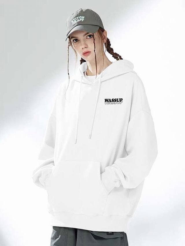 Wassup2640 New Basic Style English Letter Print Hooded Sweatshirt for Men and Women, Autumn and Winter New Loose Fit 380g Hooded Sweatshirt