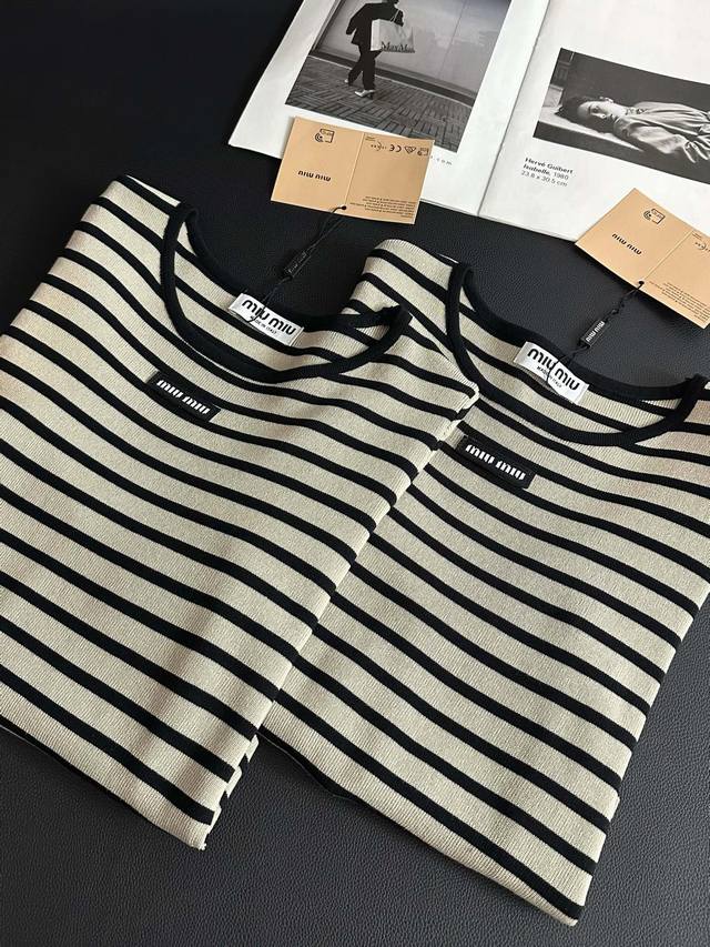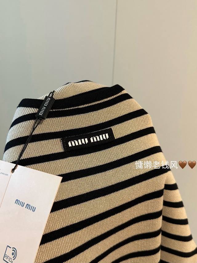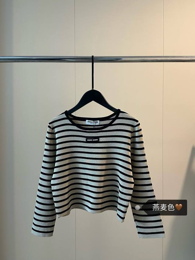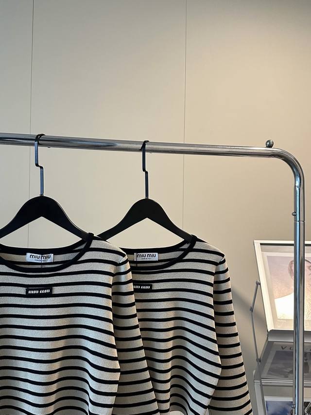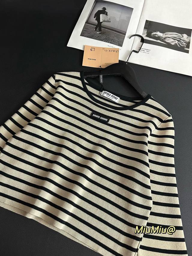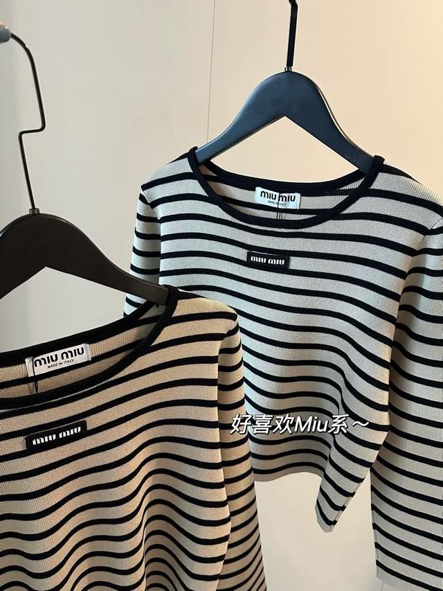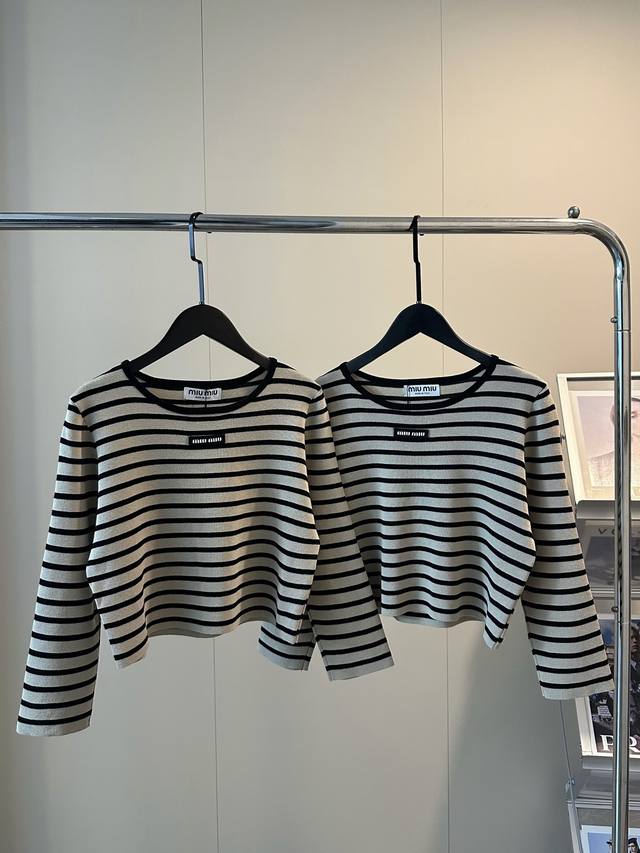 Miu Miu's new striped knitted cropped three-quarter sleeve long-sleeved top