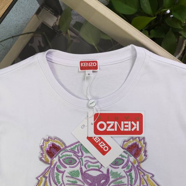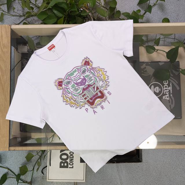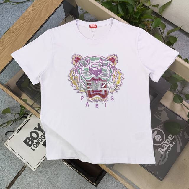 2025 new Kenzo Takada Kenzo embroidered tiger head pattern Logo embroidered casual couple short-sleeved T-shirt, simple and neat color matching, eye-catching and high-end atmosphere, hundreds of thousands of stitches of fine embroidery on the chest, still maintaining a meticulous and rigorous attitude, giving you high-end quality, using the most popular mercerized cotton fine cotton fabric, high-quality breathable, comfortable and cool. The inner embroidery is treated with mesh, skin-friendly and comfortable, the same style for men and women!