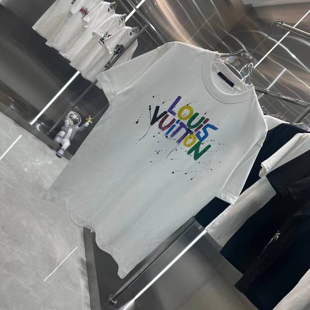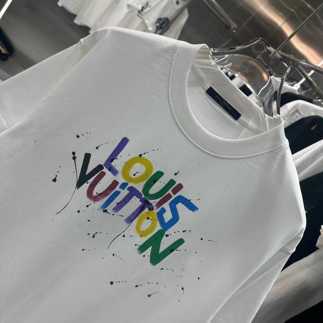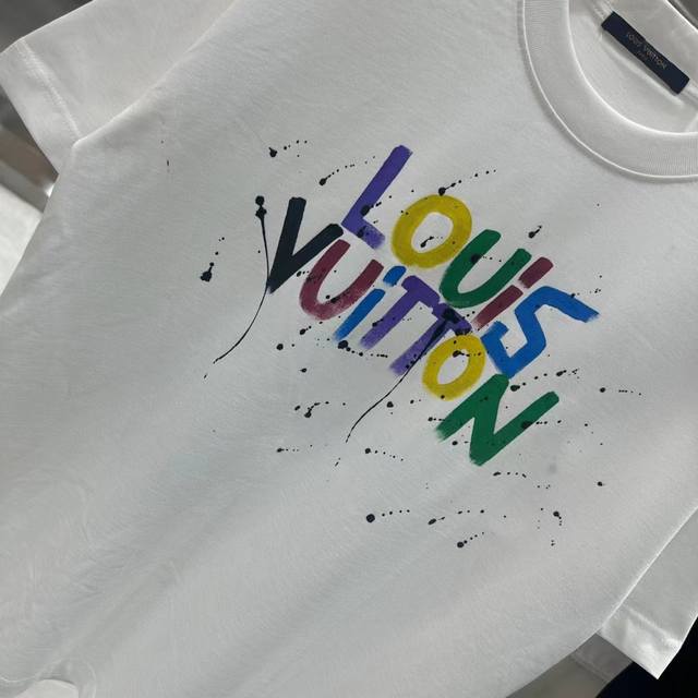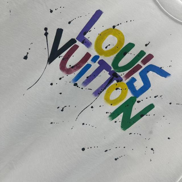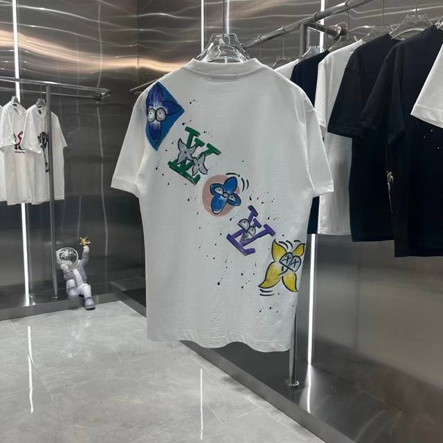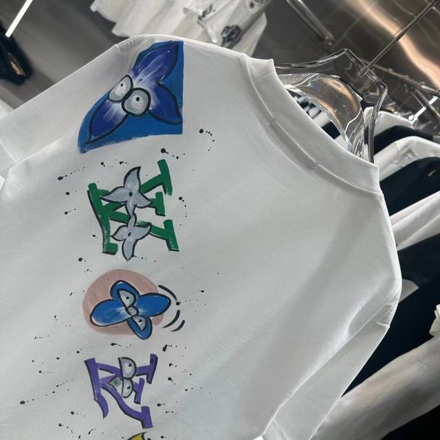 1V Early spring new hand-painted graffiti round neck short-sleeved T-shirt texture texture trendy brand excellent hot style