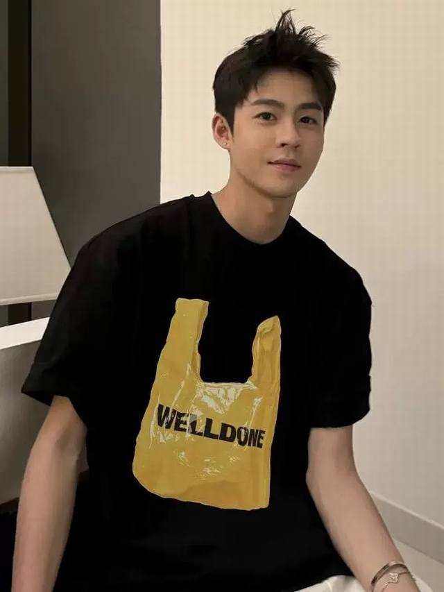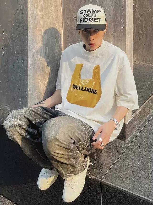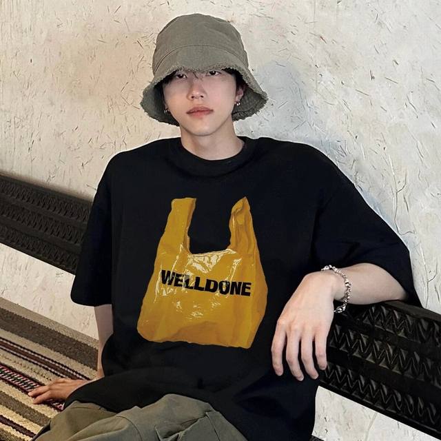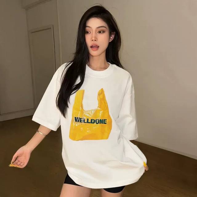 New model number: W247# We11Done shopping bag print loose round neck short-sleev