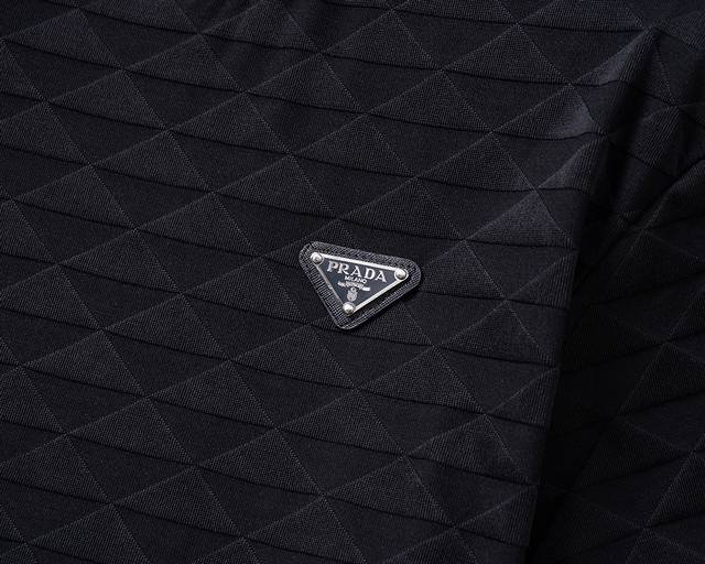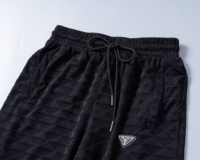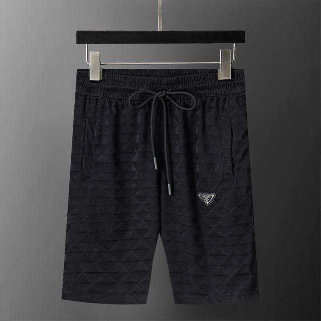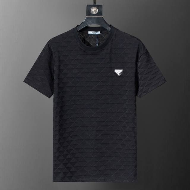 New round-neck short suit from the official website for spring and summer, with triangular pattern jacquard fabric, fashionable and handsome style, comfortable fabric, rigorous workmanship, and neat stitching. Good effect on the upper body, size M-3Xl, black