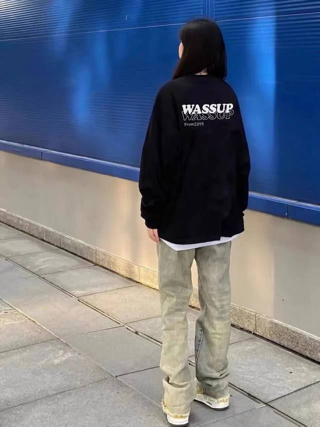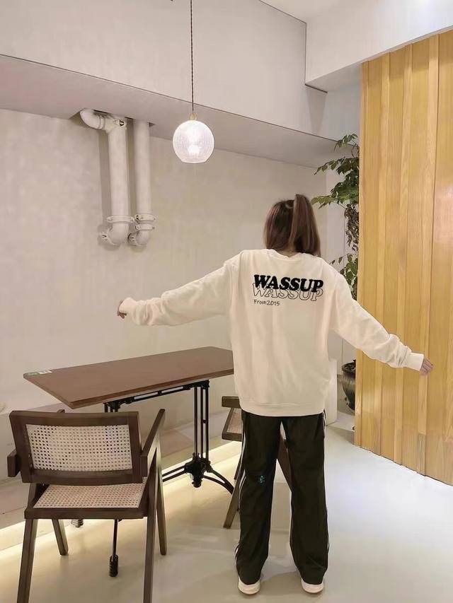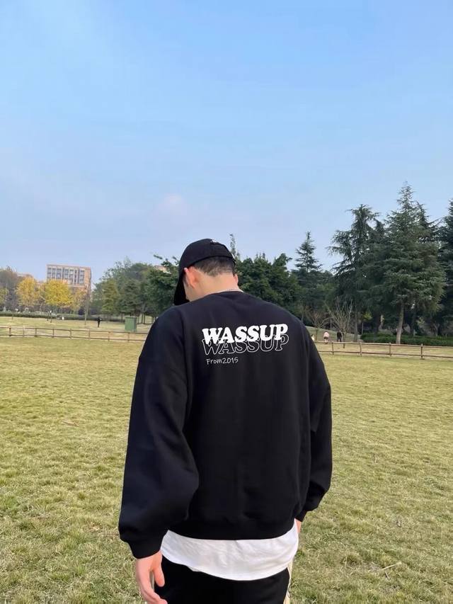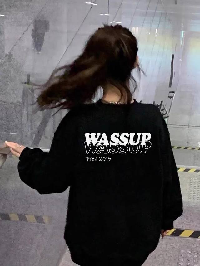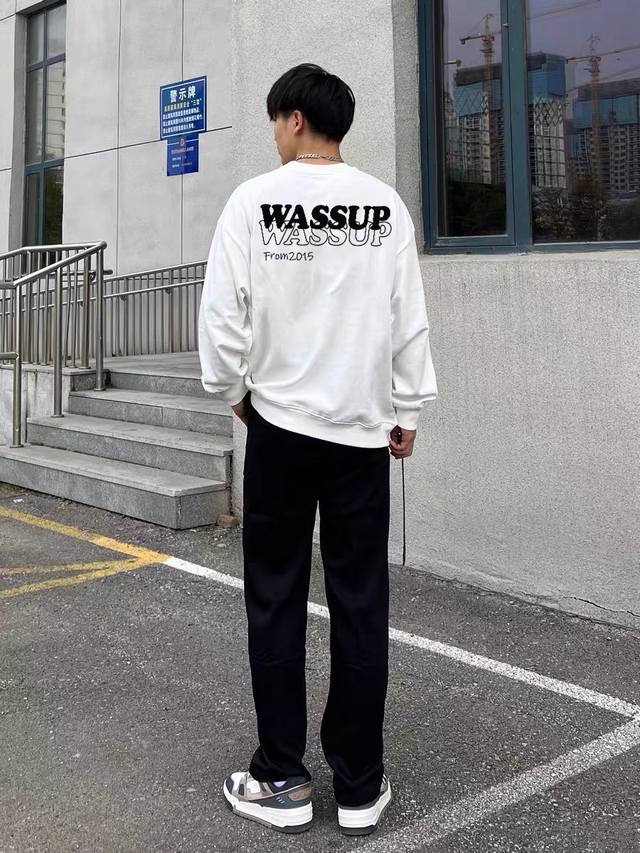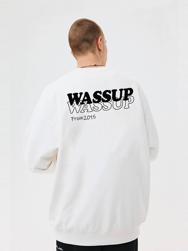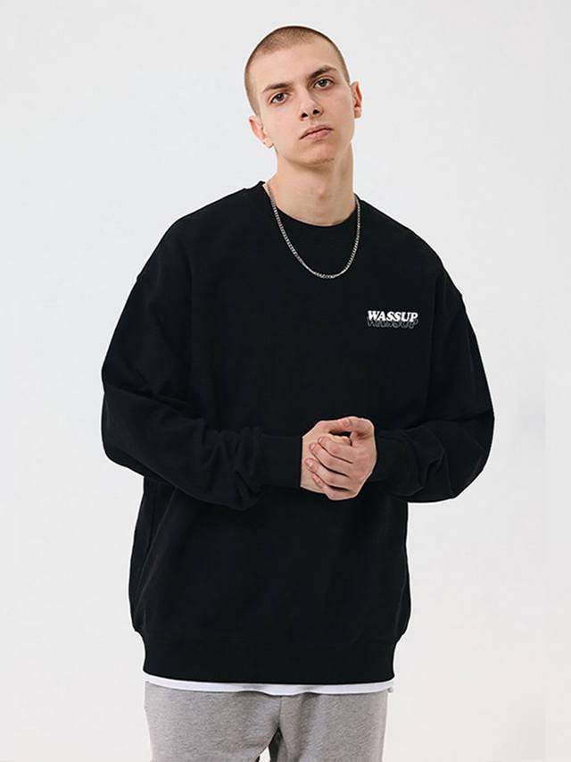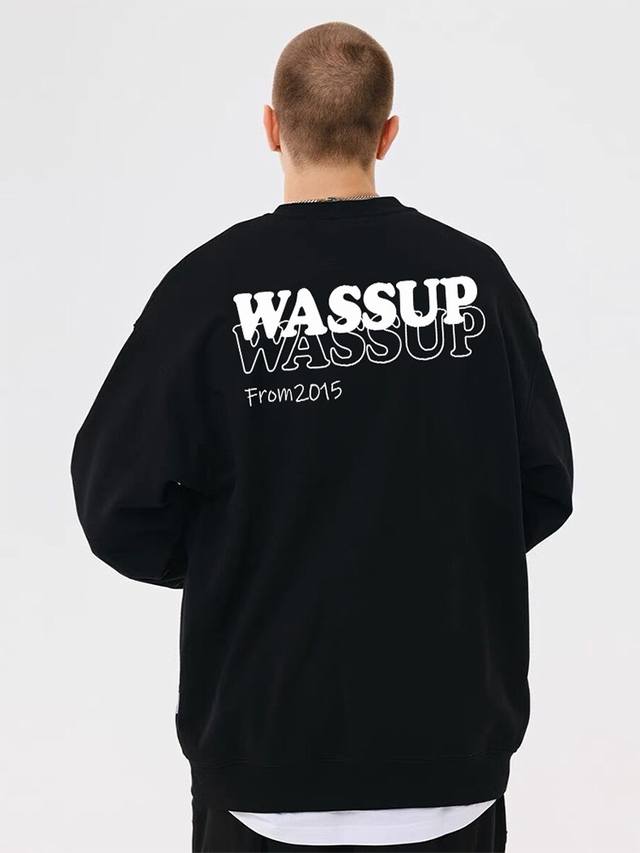 Wassup2640 New Basic English Letter Print Crew Neck Sweatshirt for Men and Women, Autumn and Winter New Loose 380g Crew Neck Sweatshirt