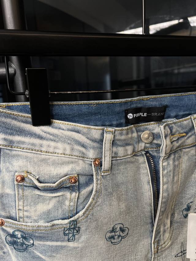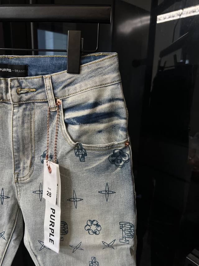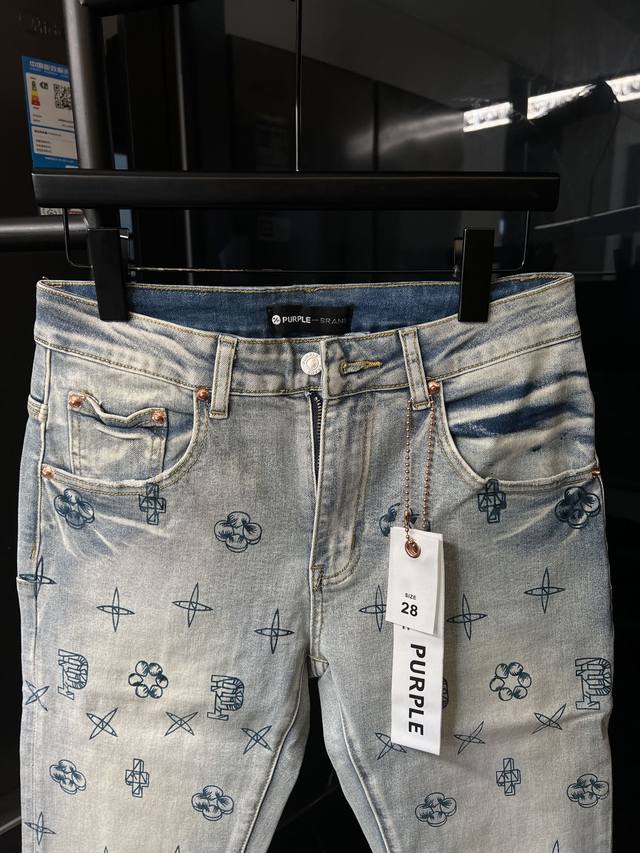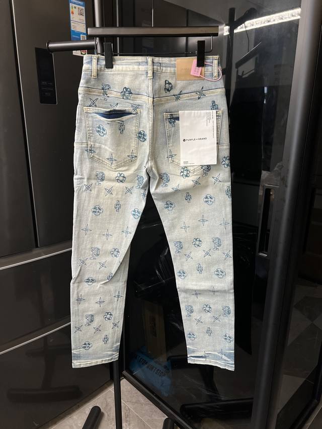 Next Day Ddd Purple Jeans American Style Light Distressed Washed Unique Print Jacquard All-Over Print Denim Jeans Blue DDD Size: 28 30 32 34 36 (Corresponds to S-XXL) Detailed size list can be found in picture 9 DDD