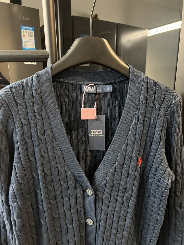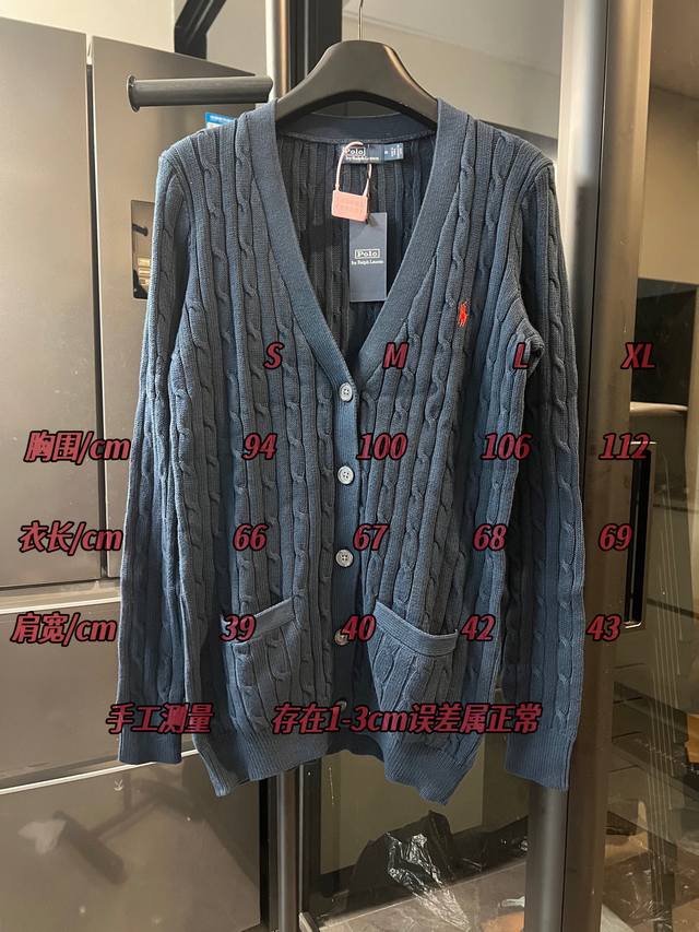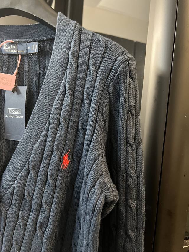 Next day, Rah Lauren 25Fw Classic Horse Embroidered Cable Cardigan Sweater, Navy Blue. Detailed Features: Made with 35% wool, 35% cashmere, and 30% synthetic fibers. German imported machine cable knitting. Custom-made brand logo resin buttons. Imported Tajima machine embroidery. Classic horse design. Ribbed collar, cuffs, and hem. Windproof and comfortable. Original label and wash tag. A must-have for everyday wear for men and women. Sizes: S, M, L, XL. See picture 9 for detailed sizes.