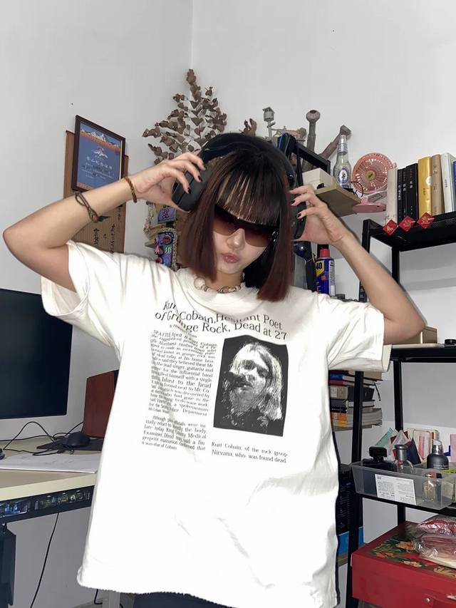 Nirvana Kurt Donald Cobain Heavyweight Short Sleeve High Street Men and Women Mo