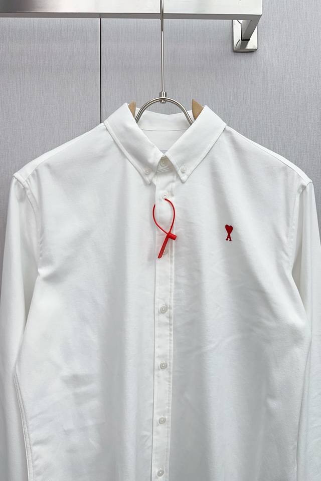 O541 Ami Paris Heart Embroidered Long-Sleeve Shirt, Custom-Made Premium Quality. Made of supple Oxford cotton with superior texture, firm yet smooth and comfortable against the skin. Pure white exudes ultimate elegance. A vibrant red heart leaps onto the chest, engraving the code of French romance. It's the ultimate simplification of color, conveying a love and dedication to life. Its minimalist form illuminates a fashionable landscape where simplicity and elegance intertwine. Using imported machine embroidery technology, advanced computer control systems and precision mechanical parts achieve high precision in Ami heart embroidery, resulting in smooth and delicate lines. The fabric has been hand-washed for a better feel and texture, making it less prone to deformation, shrinkage, and fading, maintaining its long-lasting beauty. Sizes: 38-40-42-44. All tags included. Next-day delivery.