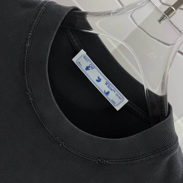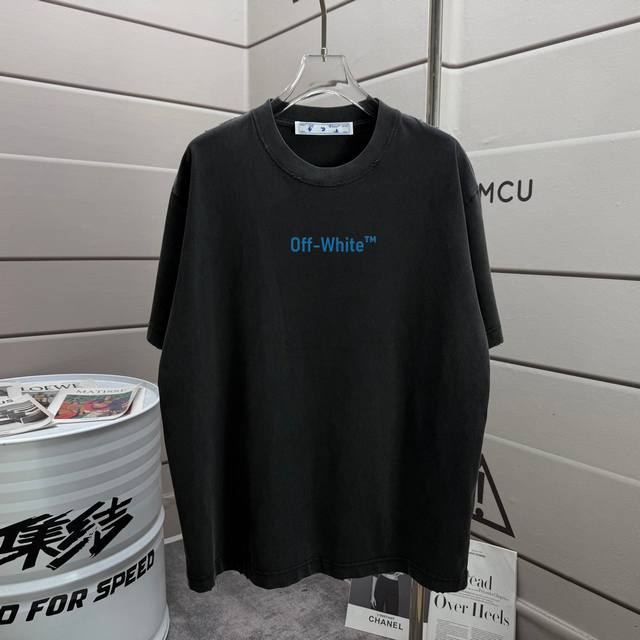 Off 2025 Autumn/Winter New Style Washed and Distressed 320g Crew Neck Short Slee