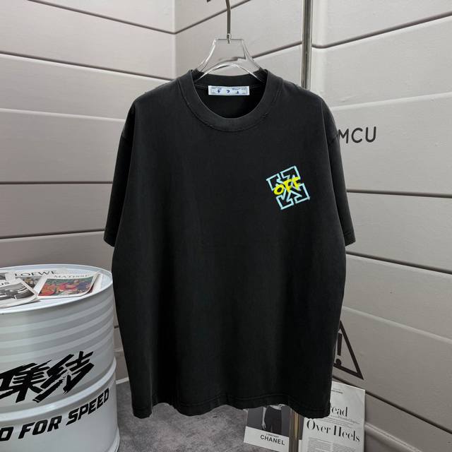 Off 2025 Autumn/Winter New Style Washed and Distressed 320g Crew Neck Short Sleeve Tee, Unisex, Loose Fit. Colors: Washed Black, Washed White, Washed Gray, Washed Purple. Sizes: S, M, L, XL, XL. Sizes: S (90-130 lbs), M (120-150 lbs), L (140-165 lbs), XL (160-180 lbs), XL (180-210 lbs).