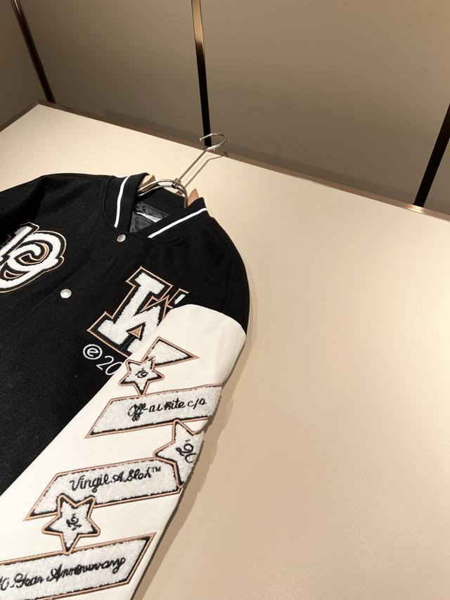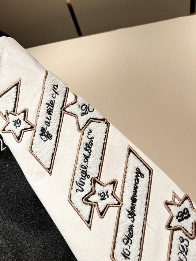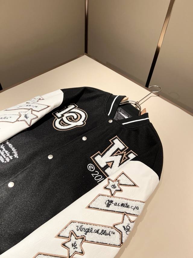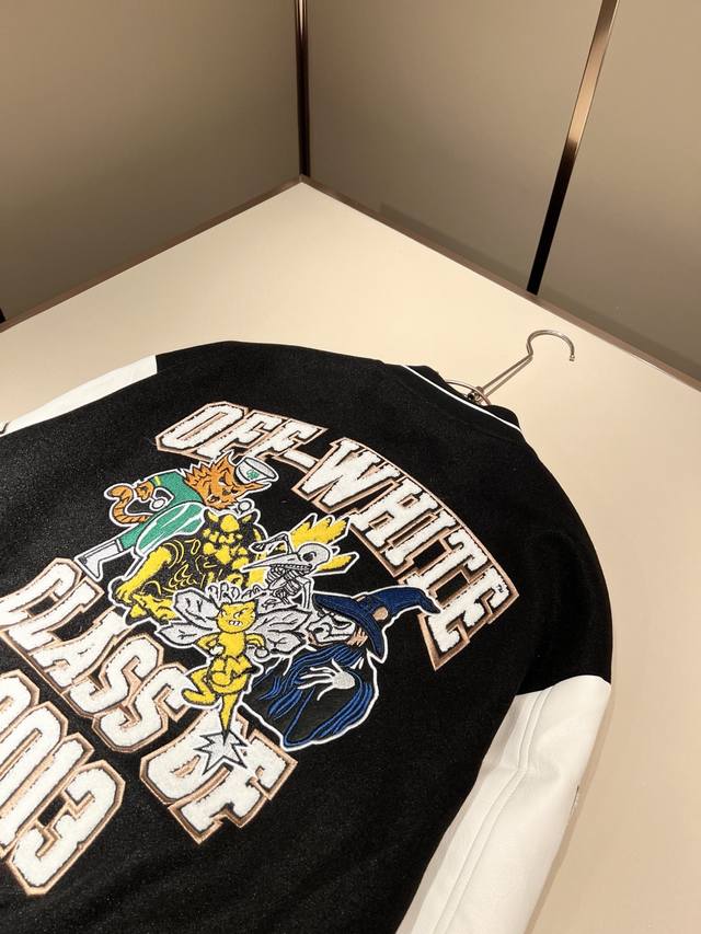 Off White 2025 Autumn/Winter New Men's Baseball Jacket, Italian factory order, a highly representative and premium piece, a must-have for all fans! Genuine Italian import order, a popular and trendy item, currently very hot, featuring the iconic logo embroidery! A high-end item worth keeping for yourself or as a gift! A classic Bugs series style, trendy and stylish, full of fashionable flair, with a very high-end feel, and a classic two-tone color scheme, creating a strong visual impact and high recognizability. Made with top-quality exclusive fabric, soft, delicate, and comfortable to the touch, with a very high-end and classy appearance! Perfectly embodying the brand's charm, leaving a lasting impression. More fashionable and elegant, simple and stylish to wear, effortlessly versatile! Looks great worn alone or as an inner layer, a striking and unforgettable piece! Sizes: S-XL