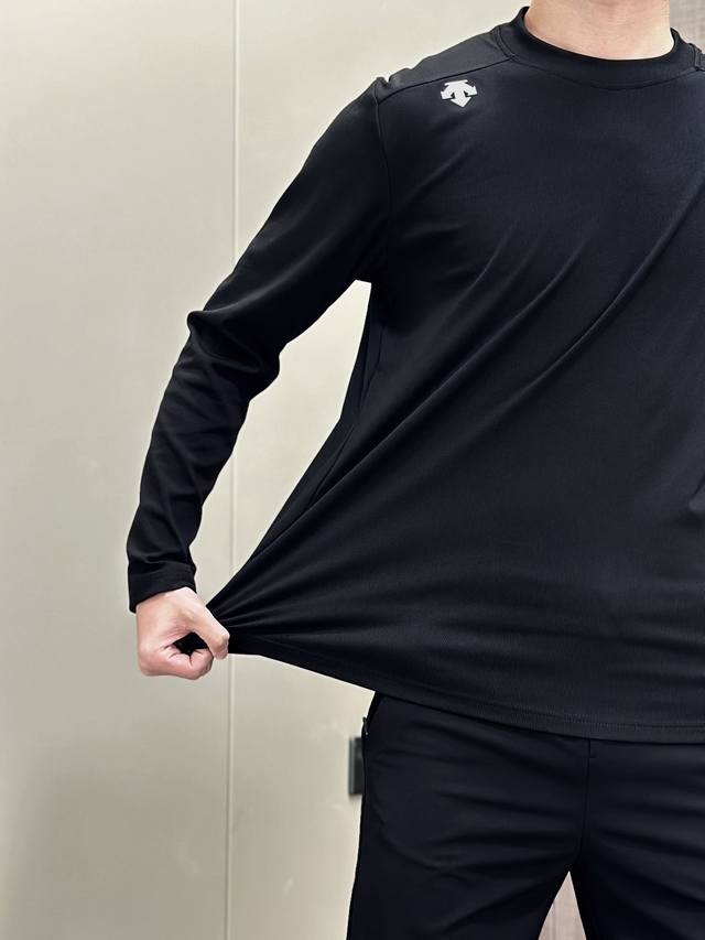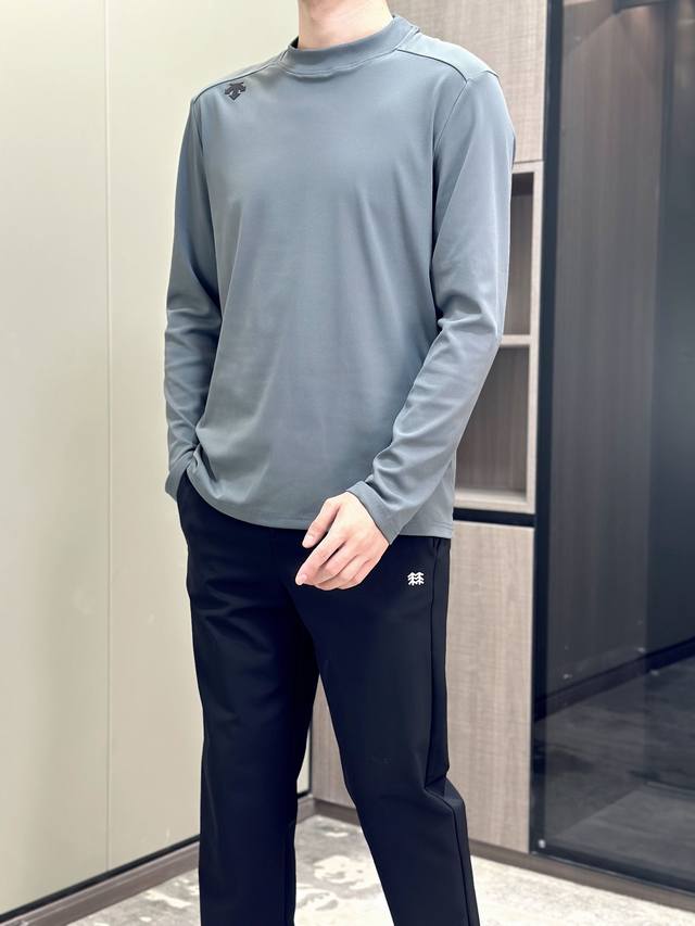 , Descente's new fall business casual knitted pullover T-shirt for men, creating a visually distinctive look.