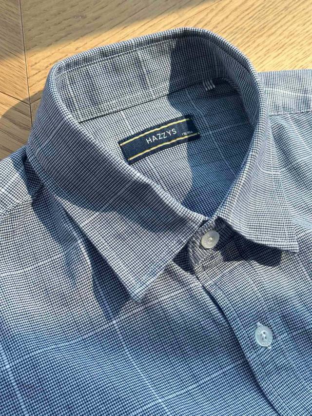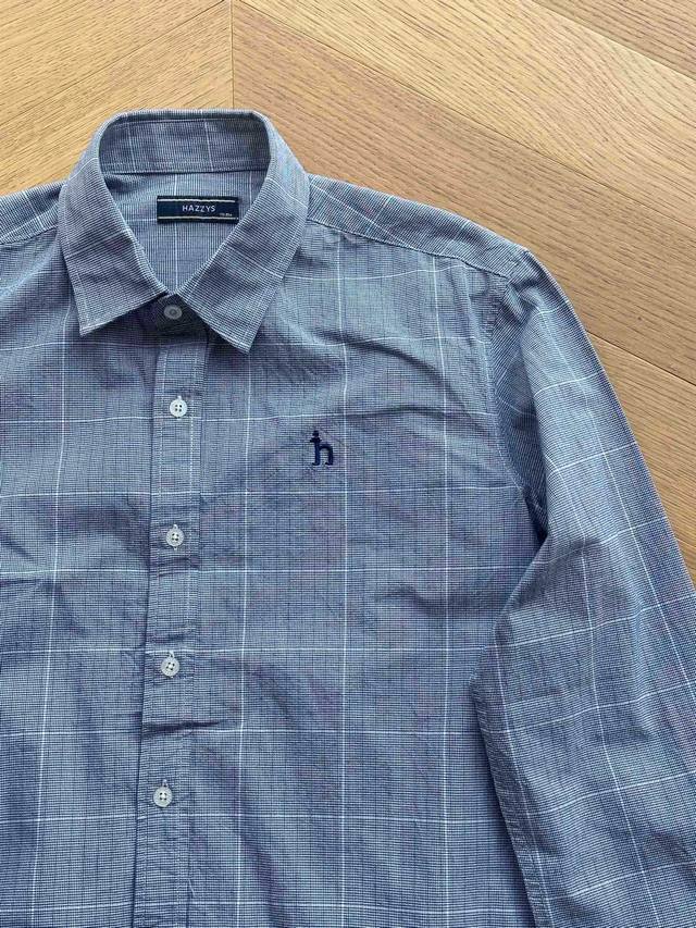 Offer Hazzys jacquard plaid embroidered small label cotton houndstooth long-sleeved shirt