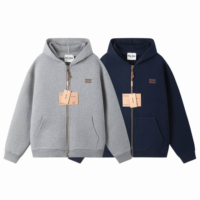 Official 1:1 replica quality Miu Miu 24Fw embroidered small logo air cotton zip-up jacket, super thick , casual, retro, stylish, simple color-blocked lines outlining the small logo embroidery, fashionable and trendy, perfect for the street, get the look of celebrities and bloggers, walk with confidence and exude a powerful aura, easily master various styles, unisex. Size: 38 40 42 44 S-XL