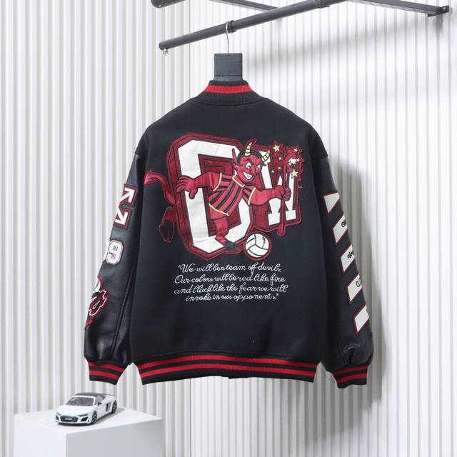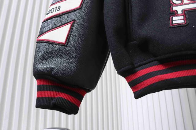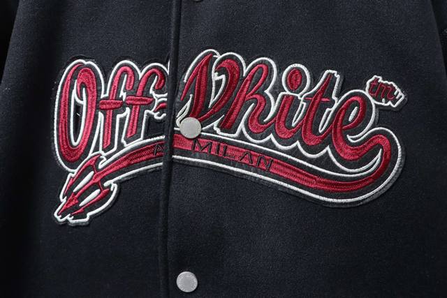 Off-White Ac Milan Collaboration Baseball Jacket - Ordered from the original mold, after a month of development, it's finally shipped! I absolutely love it! It looks incredibly stylish on. A Douyin influencer said this year's Off-White While jacket will become a future trend. A quick scroll through street style photos shows celebrities collecting it like a collector's item. A must-have for men and women seeking understated luxury. Developed to the highest quality version online, taking a month to customize at extremely high cost. German imported flat knitting machine, custom-woven wool jacquard ribbing, hand-cut, meticulous craftsmanship, and precise leather patchwork placement. The quality of the entire garment depends on these details; top-notch workmanship and attention to detail stand the test of time. Custom-made accessories, clear and perfectly reproduced lettering. High-end, sophisticated, and classy! The entire garment features exclusive custom-made embroidery with thousands of stitches, combined with leather patchwork and other embroidery techniques, perfectly combining precise stitching! Absolutely top-quality craftsmanship! Sizes M, XL. In stock, immediate shipping.