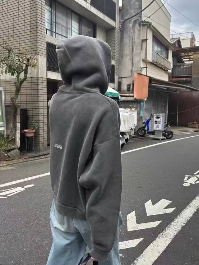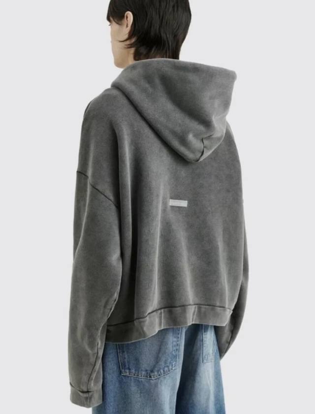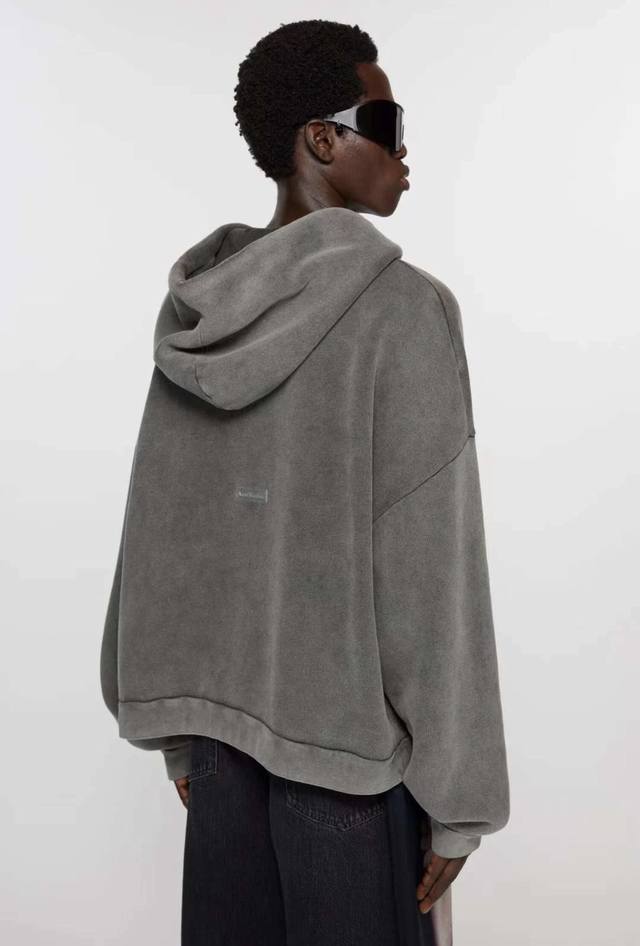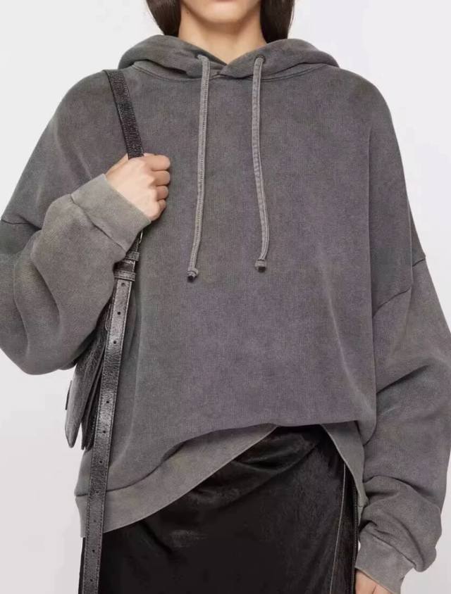 On-body photos DDD Acne Studios Washed Faded American Style Retro Distressed Loose High Street Drawstring Hooded Sweatshirt for Men and Women DDD DDD Style Number: Ac922 DDD Price: DDD Sizes: SML XL DDD Color: Washed Black DDD