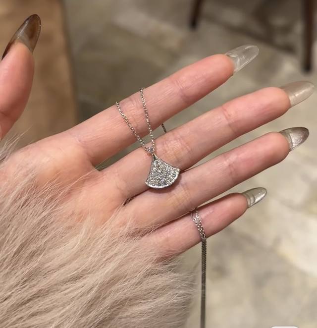 Baojia fan-shaped full diamond necklace, exquisite and dazzling hand-inlaid full zircon necklace, full of female charm swaying on the neck