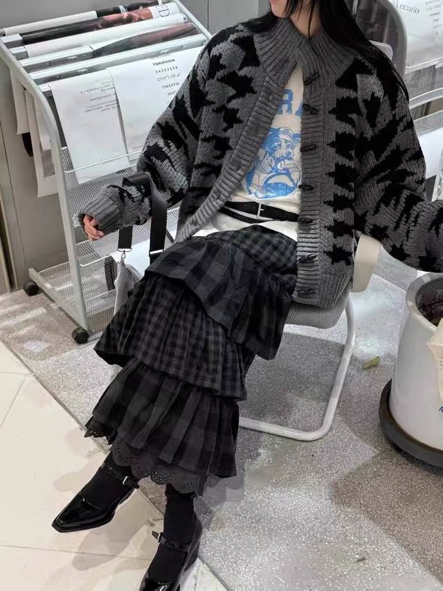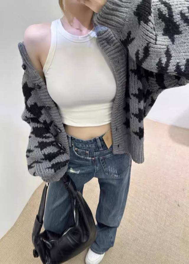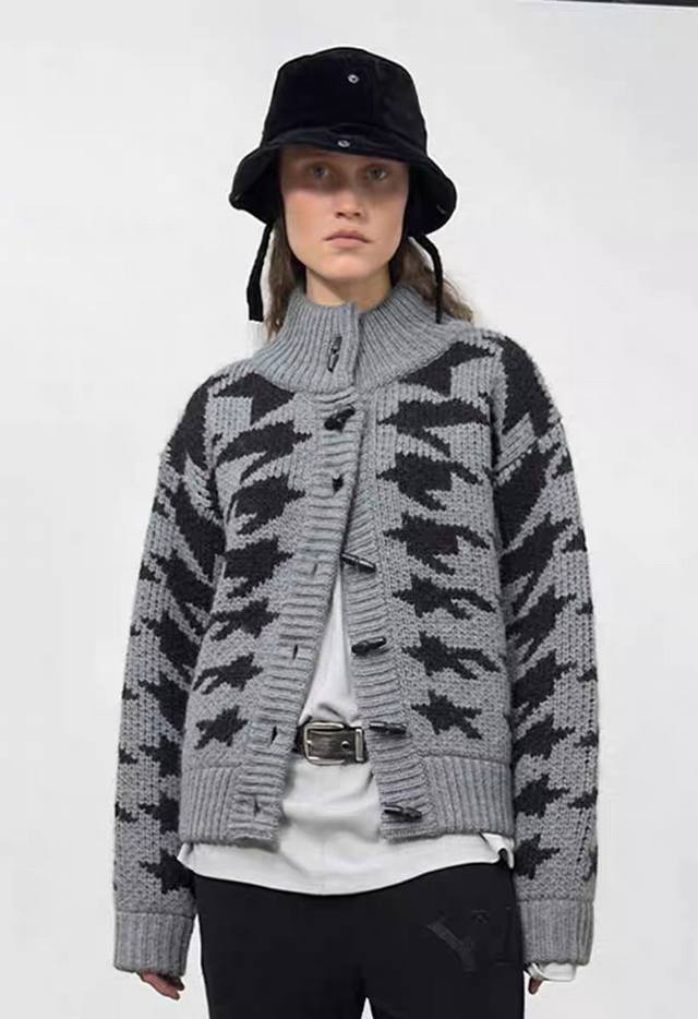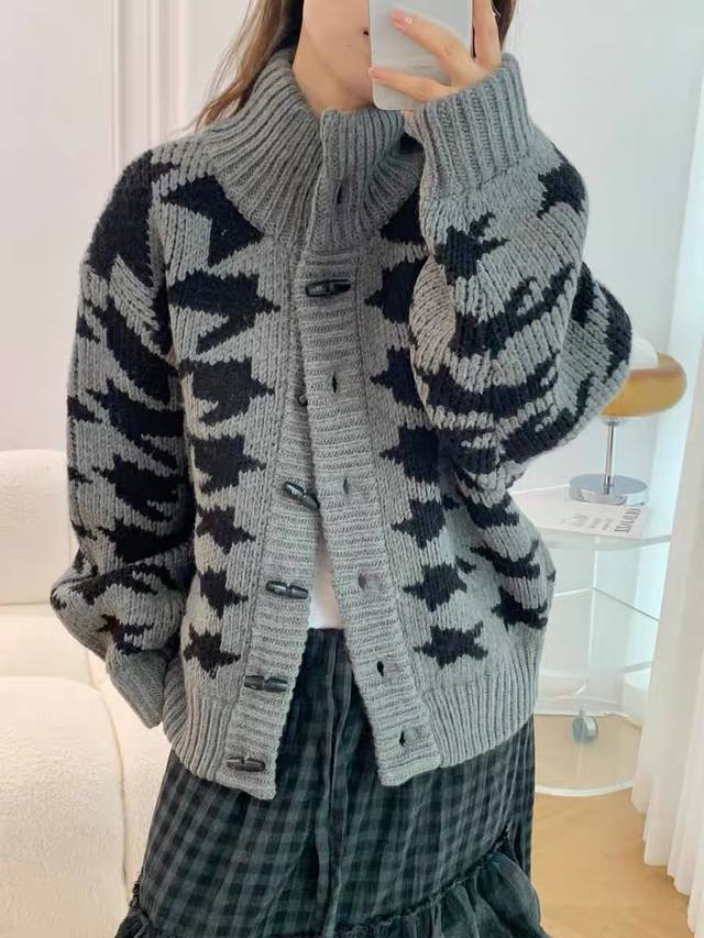 Open Yy 25Ss New Retro Houndstooth Horn Button Knit Stand Collar Sweater Cardigan Coat Casual and Versatile Top Quality on the Market, Easily Compare DDD DDD Style Number: 1104 DDD Price: p DDD Sizes: SML DDD Colors: Apricot Gray DDD