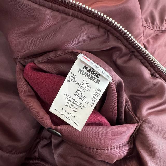 Original Magic Number 25 New Ma-1 3M Thinsulate Cotton Flight Jacket. Sizes: M (Chest 122cm, Length 70cm), L (Chest 126cm, Length 72cm), XL (Chest 130cm, Length 74cm).