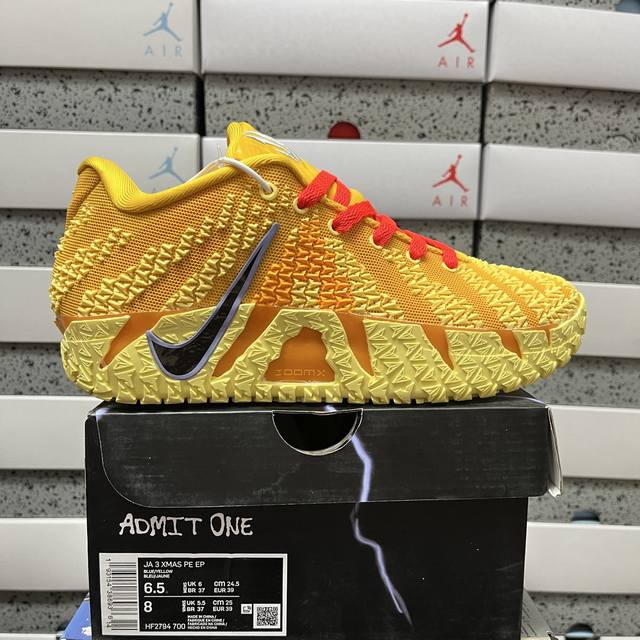 Original NK Ja 3 Scratch Ep Morant 3rd Generation Soft Comfortable Non-slip Wear-resistant Breathable Support Lightweight Low-top Basketball Shoes Yellow and Blue Mismatched Hf2794-700 Ddd Sizes: 39-46 DDD