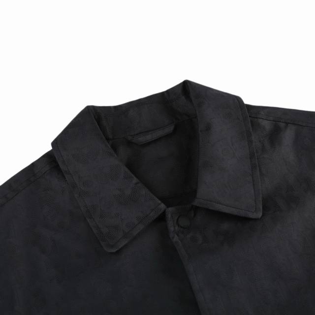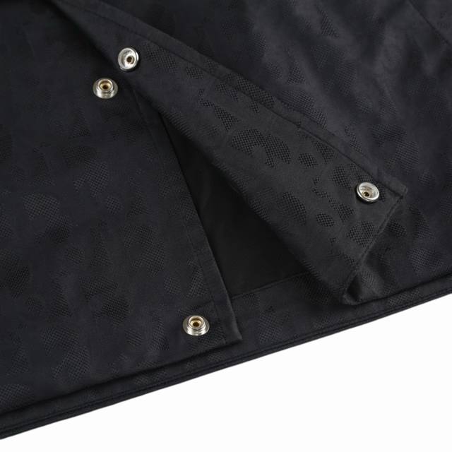 Original Quality Jacket with All-Over Print Jacquard Collar, Black. Made of 100% nylon. The ultra-fine denier yarns are precisely woven to achieve a fabric density of 580 stitches per square inch, providing lightweight yet strong structural integrity. The microporous structure ensures breathability and water repellency, significantly enhancing the garment's performance in various occasions. Advanced laser jacquard technology creates a textured surface with a strong three-dimensional effect. The pattern is clear, delicate, and the colors are rich and even. Sizes: 46, 48, 50, 52.